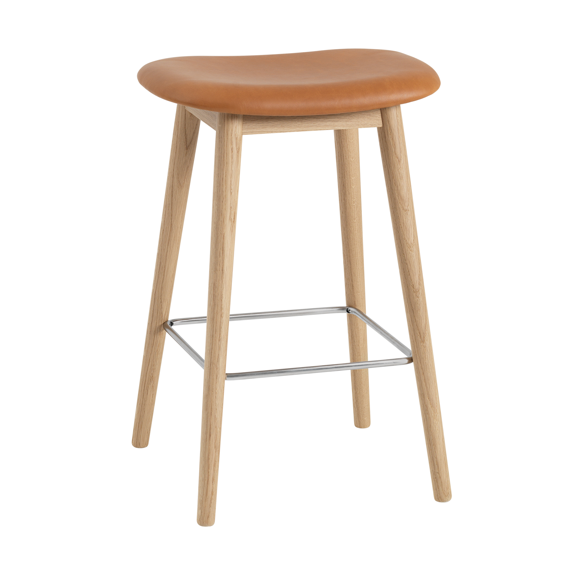 Muuto - Fiber Bar Stool Wood Base 65 cm Refine Leather Cognac/Oak - Barstolar - Iskos-Berlin - Brun - Trä/Syntetiskt