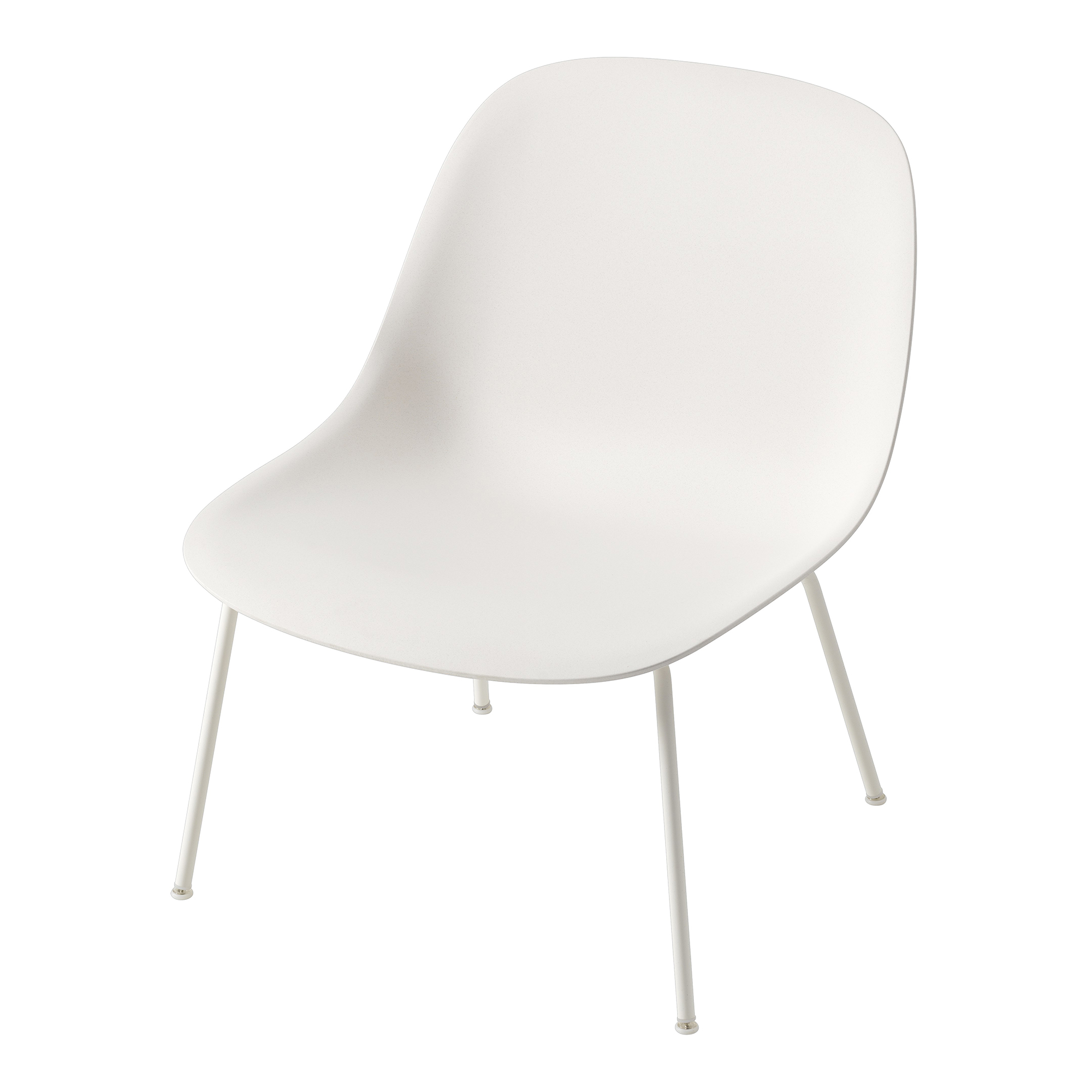 Muuto - Fiber Lounge Chair Tube Base Natural White/ White - Fåtöljer - Iskos-Berlin - Träfärgad - Metall/Trä/Plast