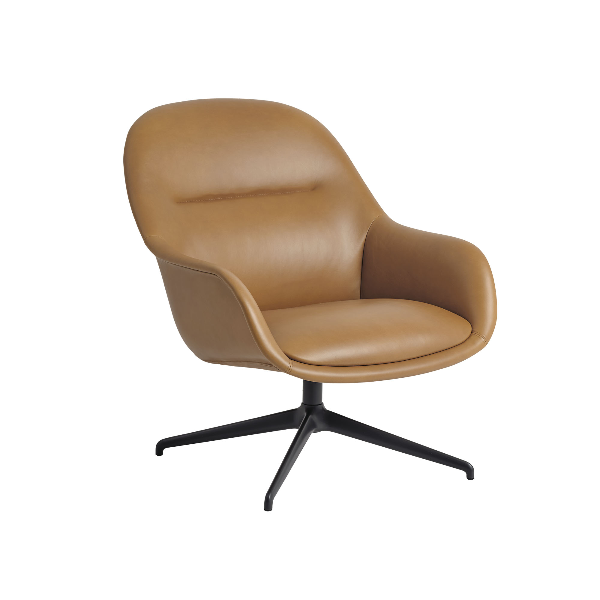 Muuto - Fiber loungefåtölj roterbart underrede refine leather cognac/anthracite black - Fåtöljer - Iskos-Berlin - Svart - Plast