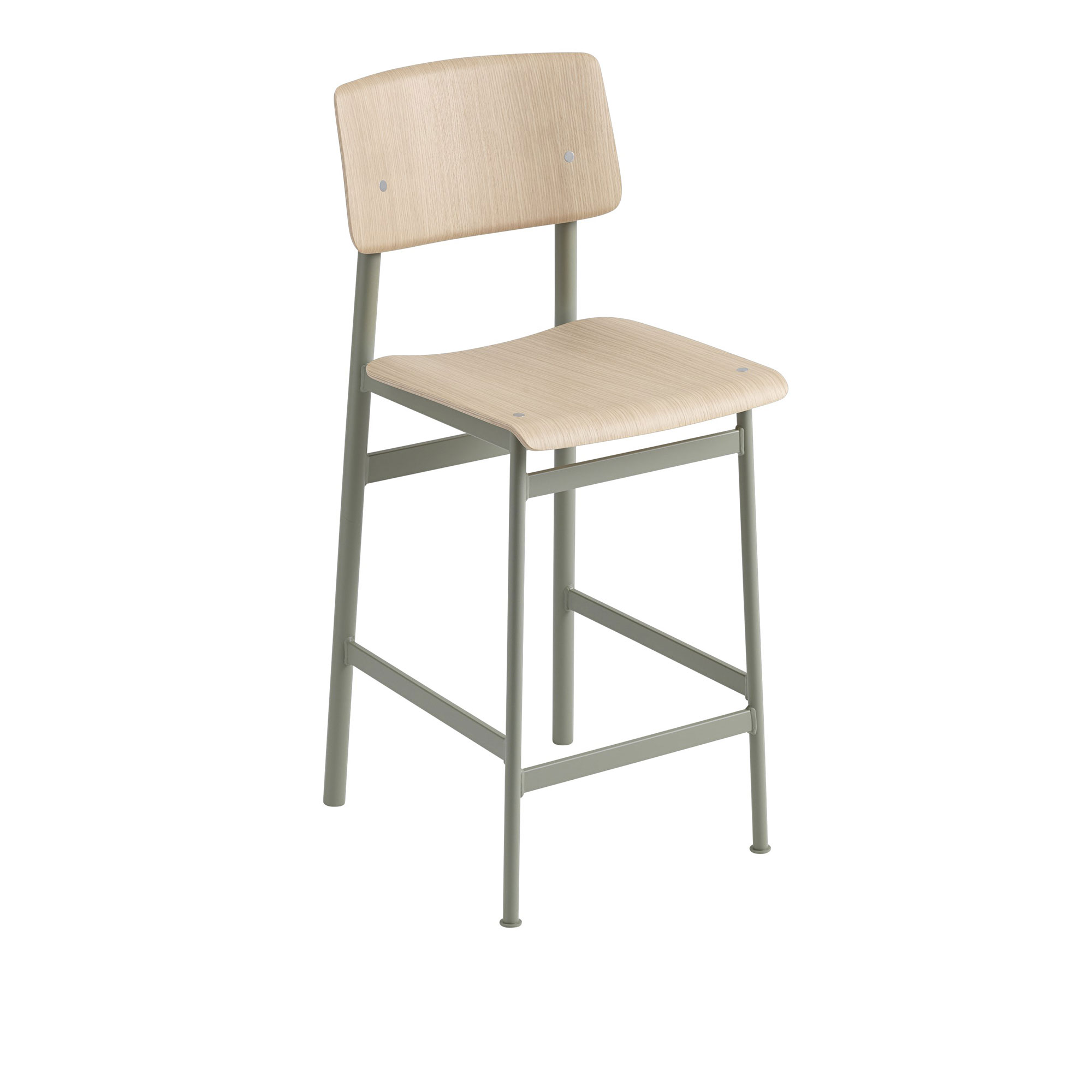 Muuto - Loft Bar Stool, H:65cm, Dusty Green/Oak - Barstolar - Thomas Bentzen - Grön - Metall/Trä