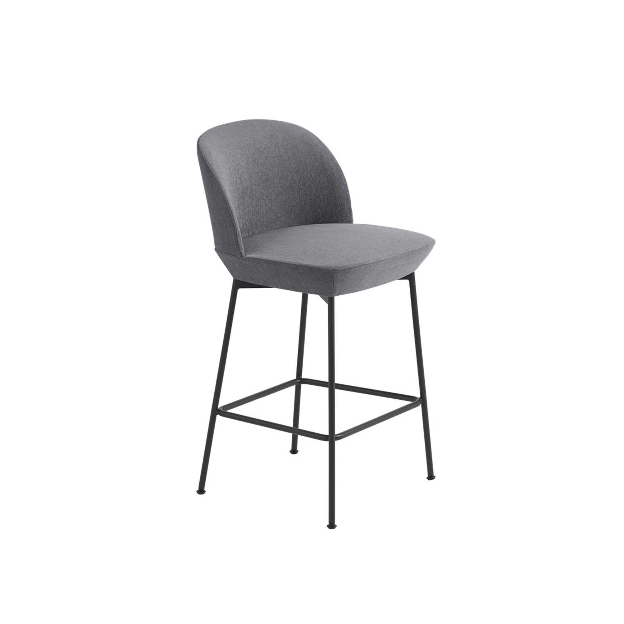 Oslo Bar Stool är en elegant möbel formgiven av designduon Andersson & Voll för det danska varumärket Muuto. Barstolen passar perfekt för barbord. Sitthöjden på 65 cm och den böjda ryggen garanterar hög komfort och en inbjudande känsla. Med ett modernt underrede som även fungerar som ett komfortabelt fotstöd kan du sitta bekvämt under långa perioder. Välj mellan klädseln Ocean 32 och förkromade ben eller klädseln Still 161 med svartlackerade ben, båda lämpliga för både offentliga och privata utrymmen. I samma serie finns även en lägre modell som passar perfekt till köksöar och köksbänkar.