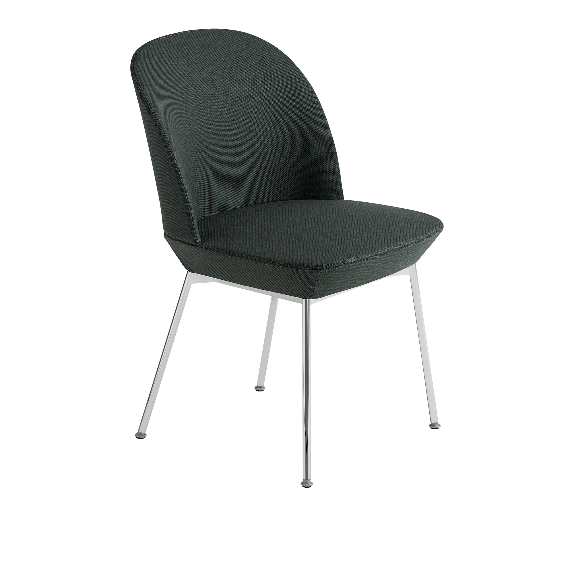 Muuto - Oslo Side Chair, Twill Weave 990 Chrome Legs - Matstolar - Anderssen & Voll - Grön - Metall/Syntetiskt/Ull