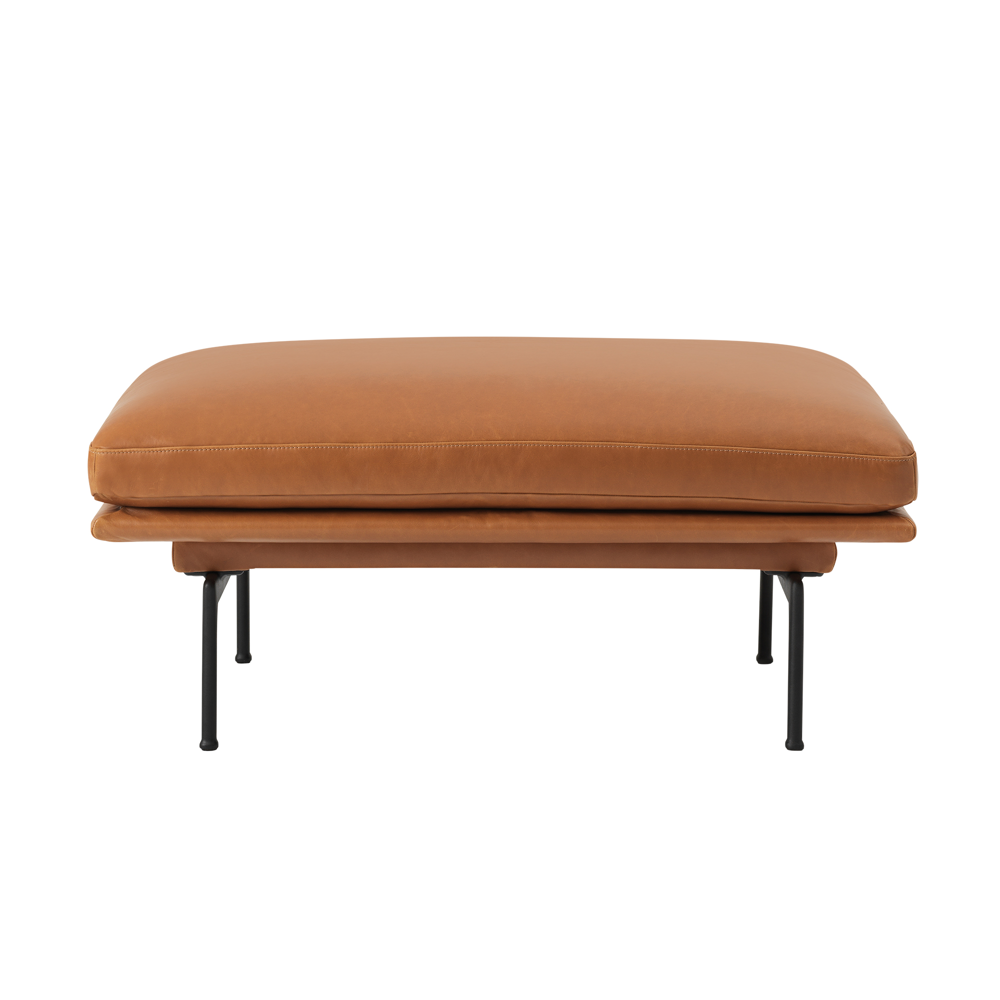 Muuto - Outline Pouf / Black Base Refine Leather Cognac - Fotpallar - Anderssen & Voll - Brun - Läder/Metall