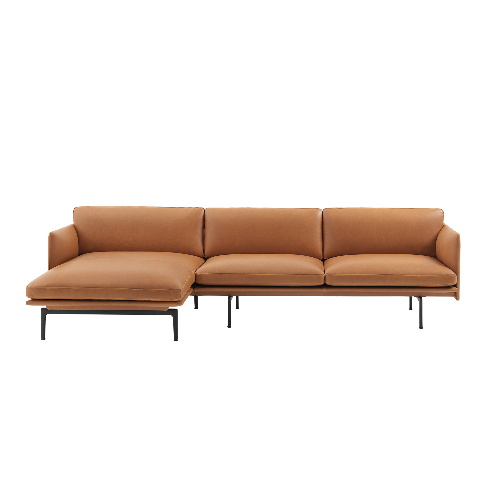 Muuto - Outline Sofa Chaise Longue Left / Black Base Refine Leather Cognac - Soffor - Anderssen & Voll