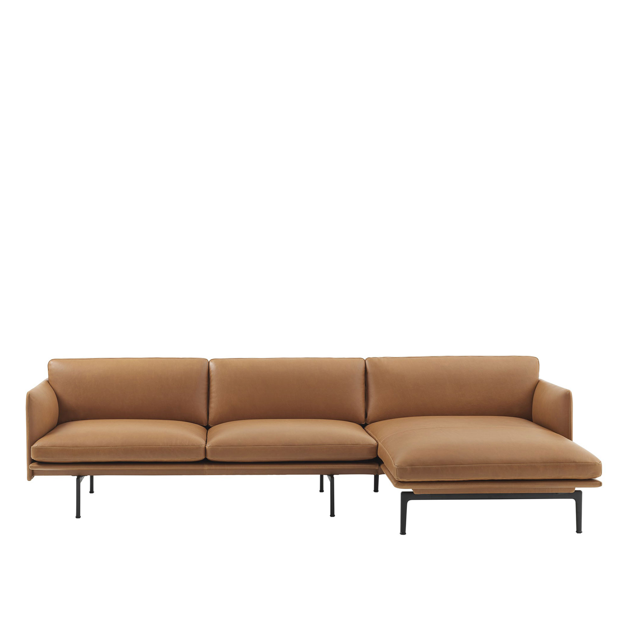 Muuto - Outline Sofa Chaise Longue Right, Silk Leather Black - Soffor - Anderssen & Voll - Svart