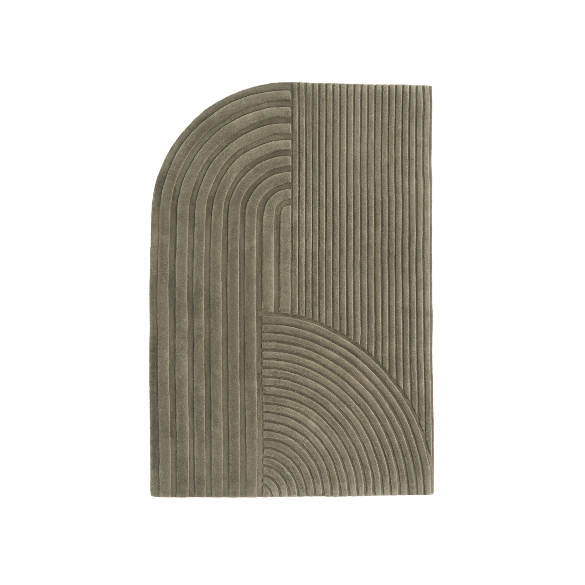 Relevo Rug från Muuto är en mjuk matta med en uttalad skulptural kvalitet. Mattans slående grafiska mönster uppnås genom att trimma det tuftade ullmaterialet på olika nivåer, vilket skapar ett iögonfallande skuggspel som ger en tvåtonad effekt istället för en monokromatisk yta. Den unika rundade hörnan ger mattan en särskild karaktär och tillför ett dynamiskt och levande uttryck i vilken inredning som helst. Relevo Rug kombinerar konstnärlig design med funktionalitet, vilket gör den till ett distinkt och stilfullt tillskott i både moderna och klassiska miljöer.