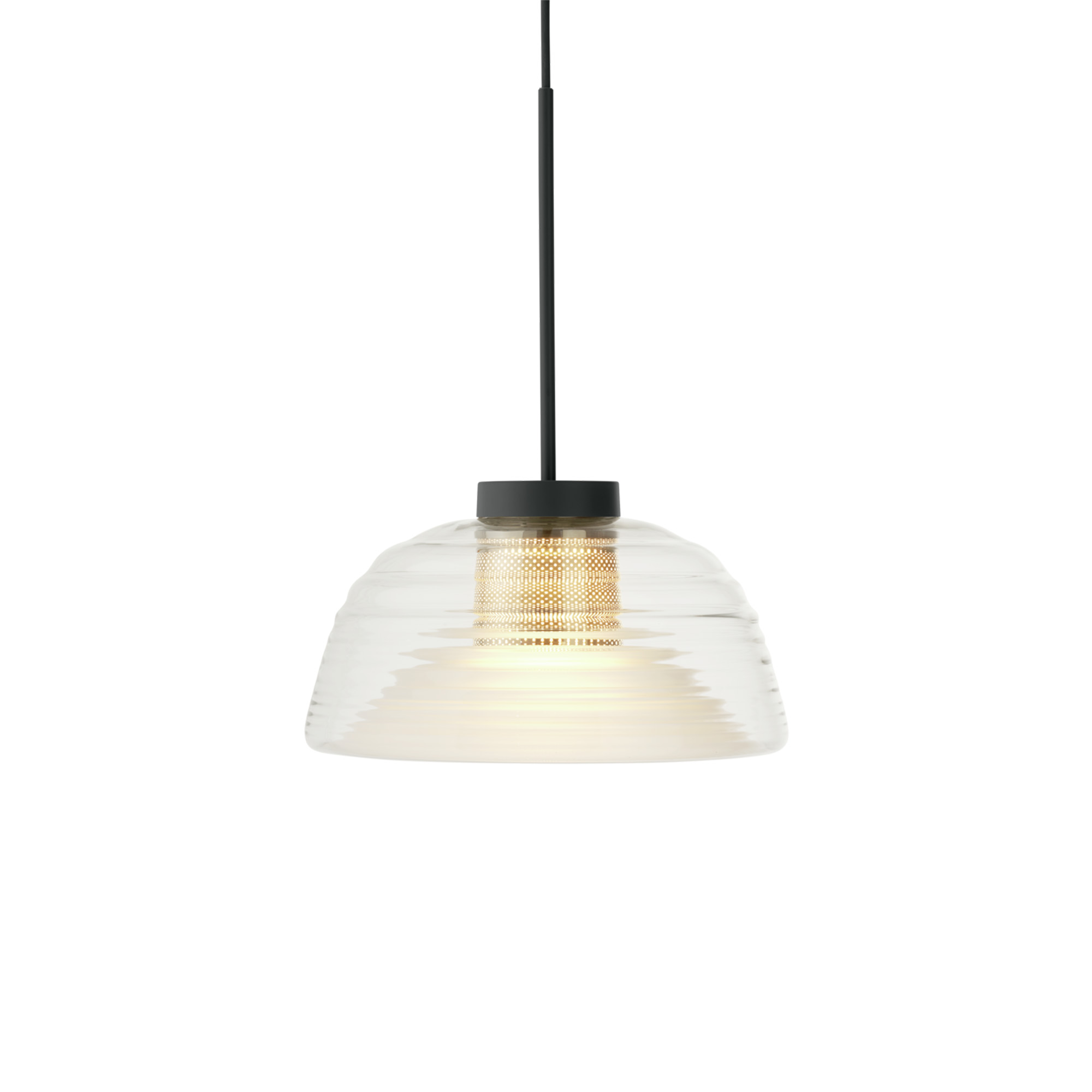 Two Layer Pendant Lamp är en taklampa från Muuto, designad av Thomas Bentzen. Tillverkad av räfflat munblåst glas och perforerad stålmesh. Ger ett mjukt, bländfritt ljus.