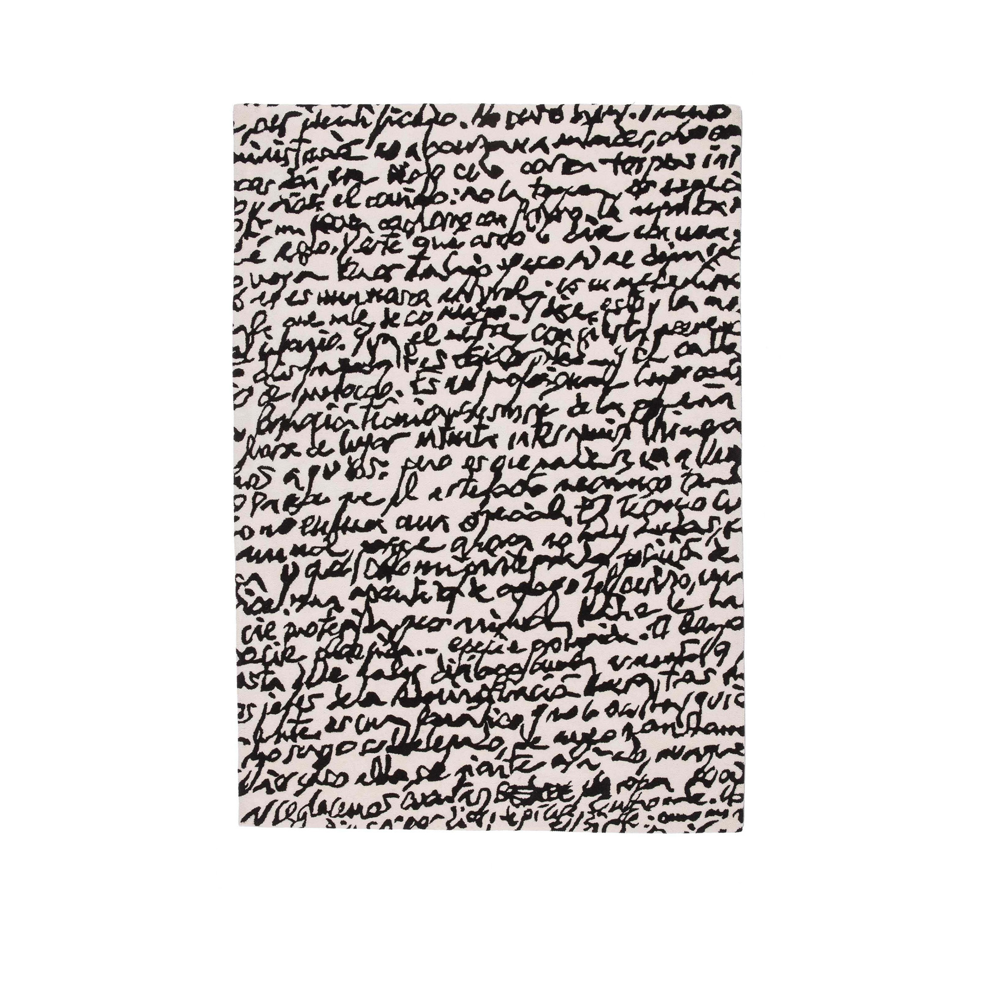 Black on White Manuscrit designad av Joaquin Ruiz Millet är en inomhusmatta som bär på en del av designerns outgivna manuskript, vilket skapades över en tioårsperiod. Genom att förstora textfragmentet omvandlas det ursprungliga innehållet till en abstrakt komposition som gör mattan till ett konstverk att utforska och tolka. Handtuftad för att uppnå en hög kvalitet, erbjuder denna matta en intressant kombination av konstnärlig historia och modern design, vilket tillför djup, mystik och personlighet till inredningen.