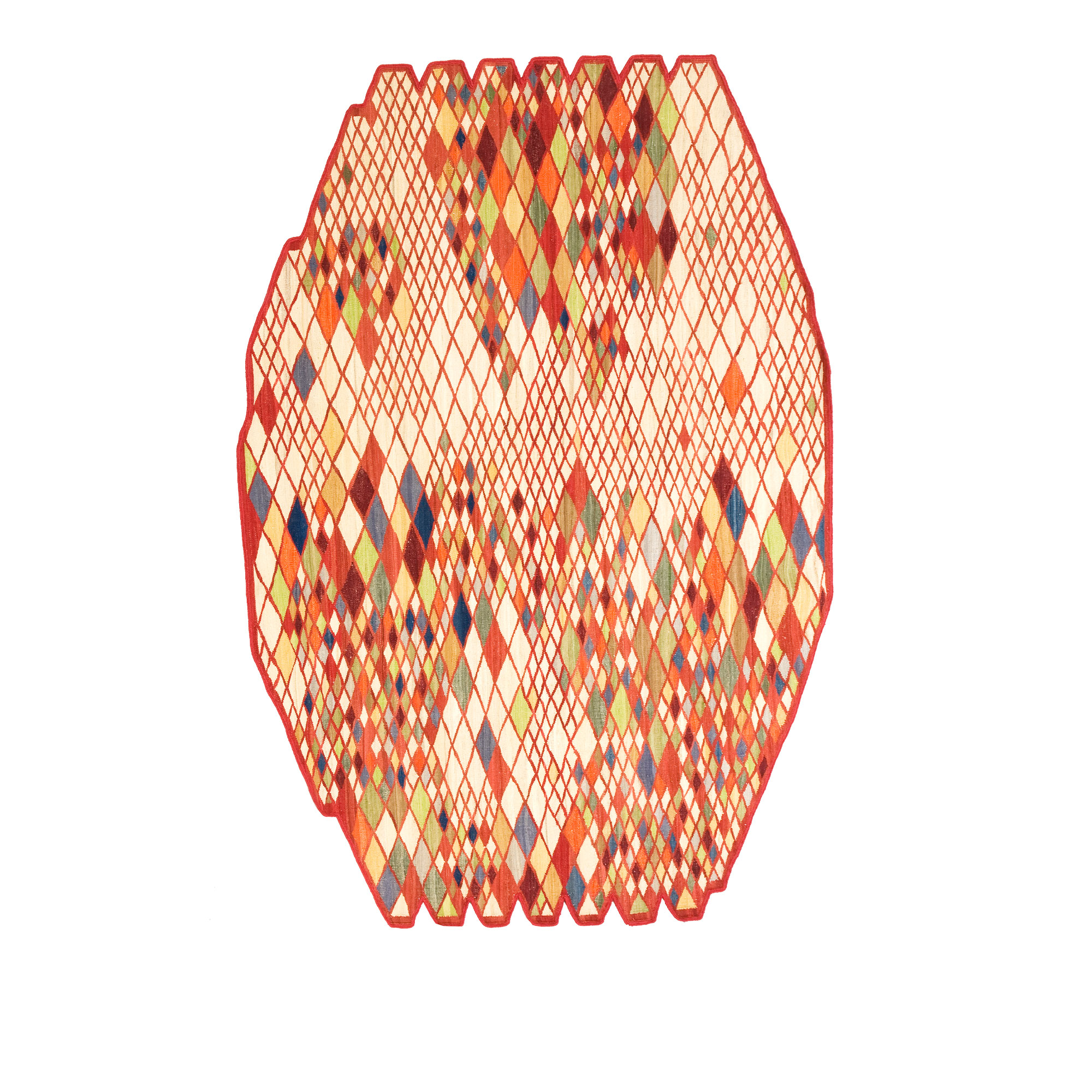 Losanges, en kelimmatta med unik form designad av Ronan och Erwan Bouroullec för Nanimarquina. Losanges betyder romber på spanska och mönstret består av just romber. Bröderna Bouroullecs ambition har varit att omtolka den traditionella persiska mattan med den gamla kelimtekniken till modern tappning. Förutom att Losanges är utformad för hand av kunniga hantverkare i Norra Pakistan, är den afghanska ullen också spunnen för hand vilket gör varje matta till ett unikt objekt.