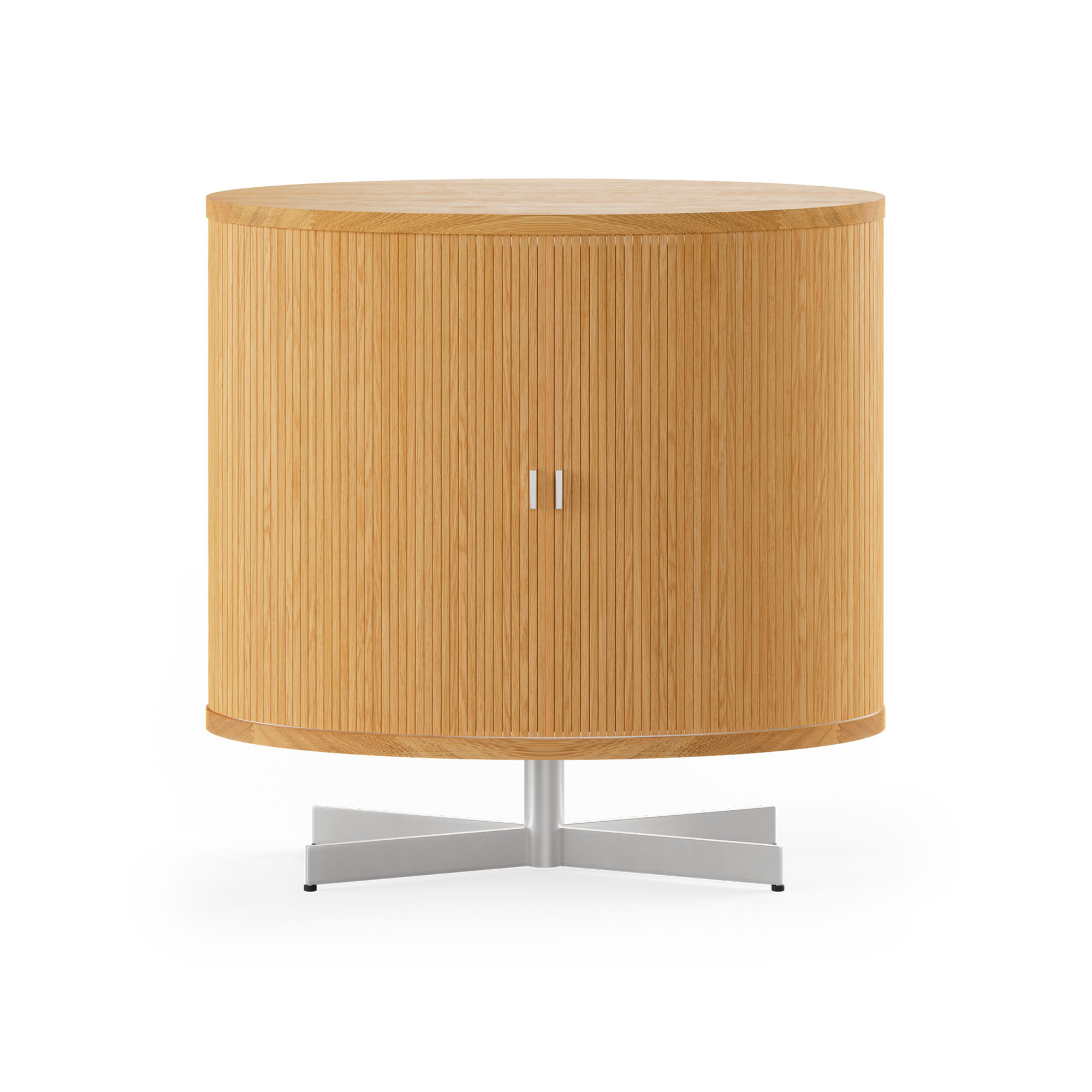 Designparet Nissen & Gehl har skapt den kompakte oppbevaringsmøblen AK 1365 for Naver Collection. Denne elegante enheten kjennetegnes av en oval topp som hviler på to persiennedører, som skjuler en praktisk hylle og rikelig med plass for oppbevaring. Det unike understellet er korsformet og konstruert av stål. Møblen AK 1365 er allsidig og passer utmerket i en entré, stue eller arbeidsrom. Du har muligheten til å tilpasse skjenken etter ditt hjem ved å velge mellom materialer som ask, eik eller valnøtt, samt en overflatebehandling som harmonerer med din øvrige innredning. For de som søker en møbel med lignende design men større dimensjoner tilbyr vi modellen AK 1350. AK 1365 er dessuten egnet til å bruke som en elegant og mindre TV-møbel.