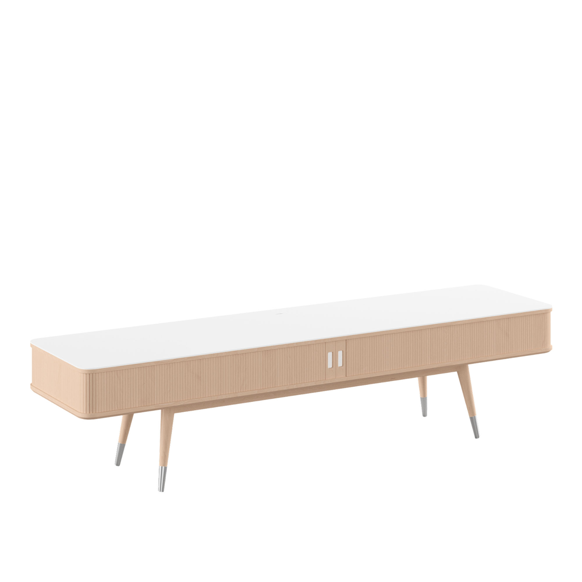 Designparet Nissen & Gehl har skapt TV-møbelet AK 2720-2721 for det danske møbelfirmaet Naver Collection. Denne møbelen har en ramme som er konstruert av solide tresorter som eik, ask, alm eller valnøtt, mens dens overflate er laget av det distinkte materialet Corian. Corian er kjent for sin elfenbenslignende finish og er en komposisjon av akryl, naturlige mineraler og pigmenter, noe som bidrar til økt holdbarhet og motstand mot skader og flekker på overflaten. Modellen AK 2720 er den høyere versjonen med ben som harmonerer med møbelets tre-ramme og detaljer i rustfritt stål, mens modell 2721 er den lavere varianten med en base i stål.AK 2720-2721 er en fusjon av estetisk skjønnhet og praktisk brukbarhet. Dets design er preget av en minimalistisk estetikk med retroinspirerte elementer. Møbelet tilbyr to generøse oppbevaringsrom med skyvedører på forsiden. Siden grunnleggelsen i 1995 har Naver Collection vært synonymt med kvalitet, noe som reflekteres i deres hele sortiment. Deres filosofi, The elegance of power, gjenspeiler firmaets engasjement for tradisjonelt håndverk i kombinasjon med samtidsmøbeldesign.