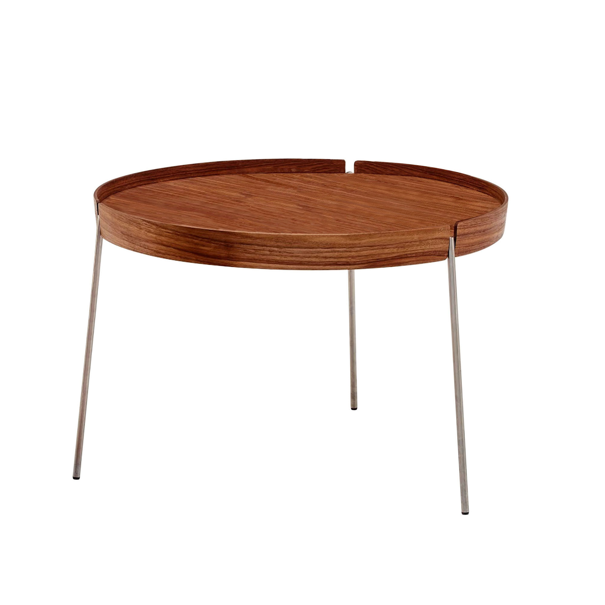 Designparet Nissen & Gehl står bak designen av sidebordet AK 725 Turn, som er et verk av den anerkjente danske møbelprodusenten Naver. Dette bordet utmerker seg med sin innovative og lekne stil og er konstruert med finérmaterialer som finnes i alternativene ask, eik eller valnøtt. I tillegg er bordplaten belagt med et laminat som kan vendes, noe som tilbyr flere valgmuligheter for brukeren til å bestemme om en livlig farge eller et finér i tre skal dominere bordets topp. De tre bena i rustfritt stål bidrar til et sofistikert utseende. AK 725 Turn er et utmerket komplement til det mindre brettbordet i samme kolleksjon, AK 710. Dette sidebordet er også en staselig interiørdetalj som kan plasseres i hvilket som helst rom i boligen og skape en følelse av eleganse.