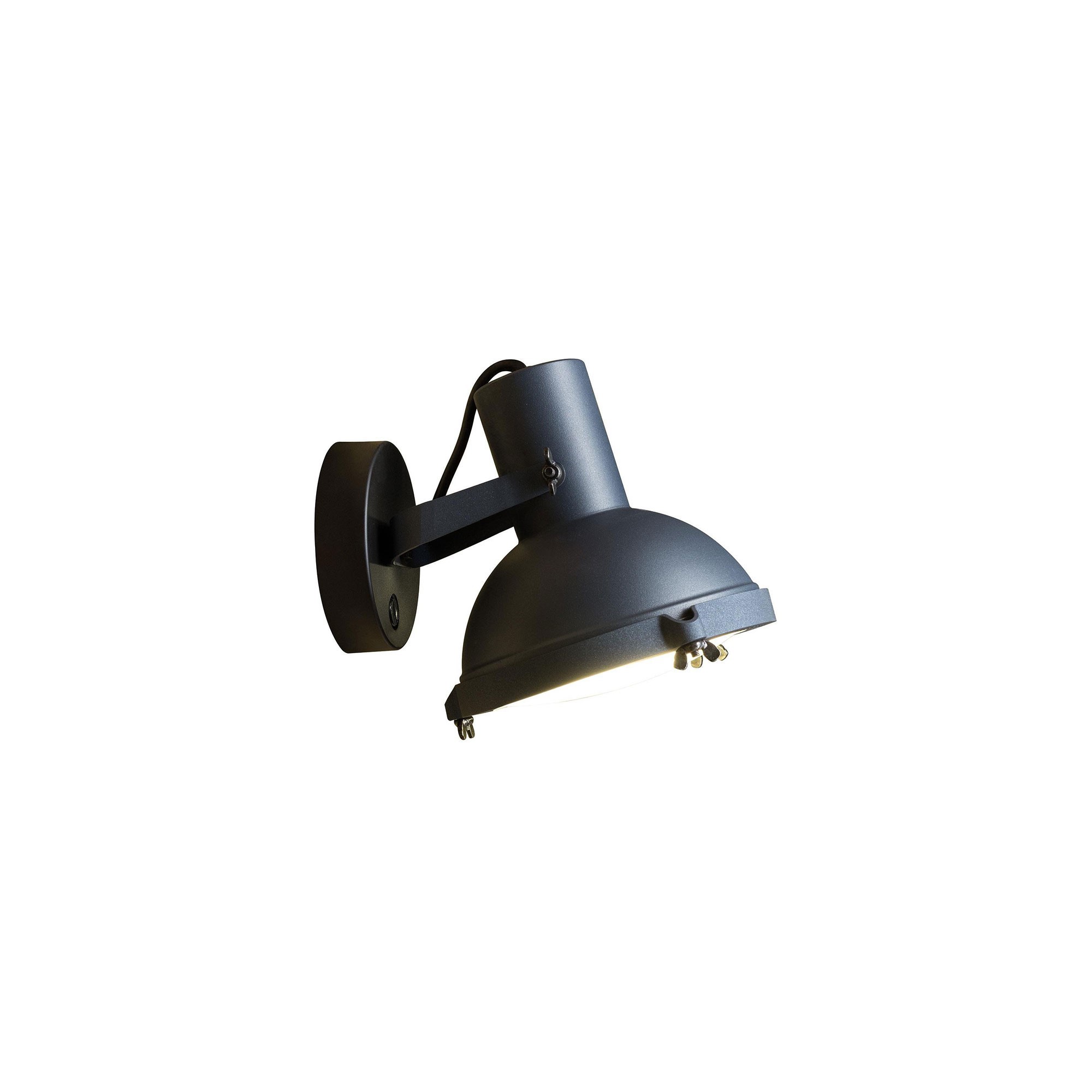 En väggmonterad lampa från Nemo Lighting, modellen Projecteur 165, har skapats av den legendariska designern Le Corbusier, känd för sina eviga bidrag till designvärlden, inklusive möbler. Denna lampa är en del av en kollektion med industriellt tema som erbjuder olika typer av belysning såsom stående lampor, bordlampor och hänglampor, med vissa modeller anpassade för utomhusbruk. Projecteur 165 är tillgänglig i tre färgsättningar och är konstruerad av aluminium, med en justerbar arm för att styra ljuset dit det önskas. Installationen av Projecteur 165 sker på väggen och lampan kan dimmas med rätt typ av ljuskälla. Den avger ett koncentrerat ljus och har ett lampglas som är sandblästrat på insidan för att skapa en mjukare belysning. Dess distinkta design gör den idealisk för placering över en soffa eller i en entré. Skruvarna är målade i en matt svart nyans. Observera att ljuskälla inte medföljer.