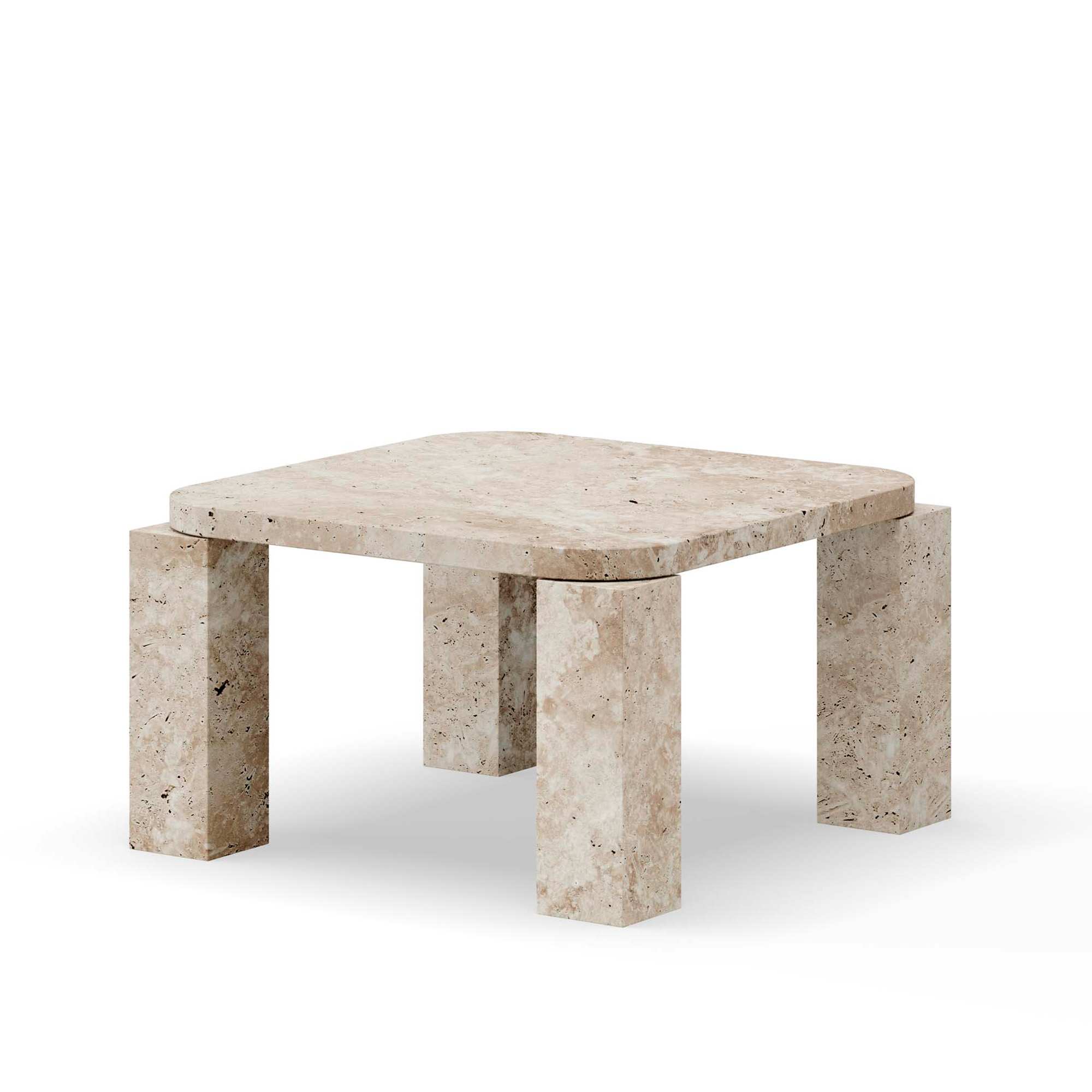 New Works - Atlas Coffee Table 600x600 Unfilled Travertine - Soffbord - John Astbury - Beige - Sten