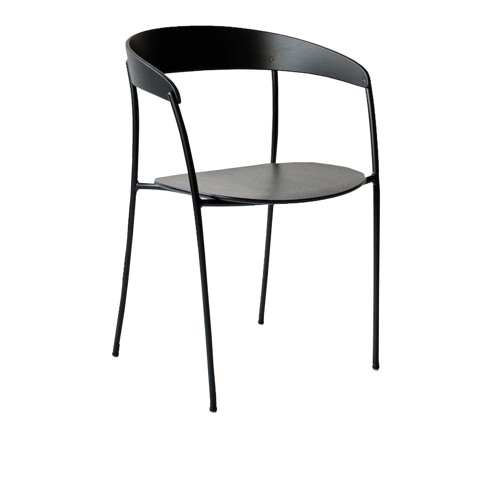 New Works - Missing Chair With Armrest, Black Lacquered Ash With Black Frame - Matstolar - Regular Company - Svart - Metall/Trä