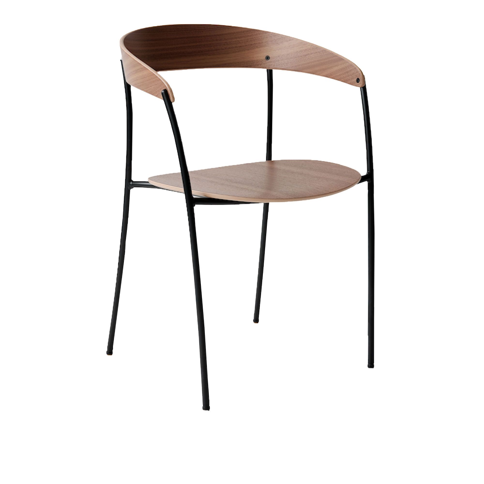 New Works - Missing Chair With Armrest, Lacquered Walnut With Black Frame - Matstolar - Regular Company - Brun,Träfärgad - Metall/Trä