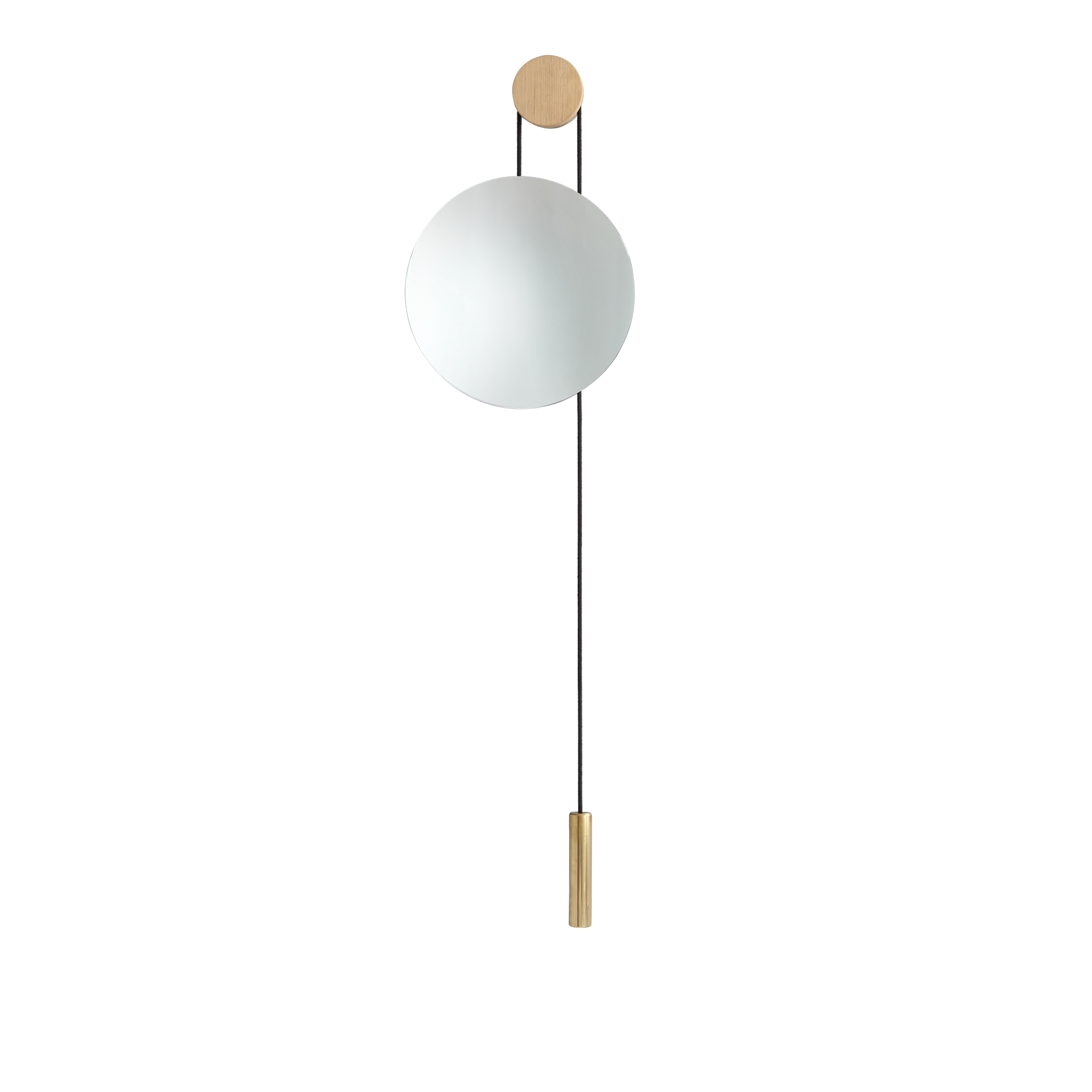 New Works - Rise Shine Wall Mirror, Natural Oak Brass Weight - Väggspeglar - MSDS Studio - Transparent,Träfärgad