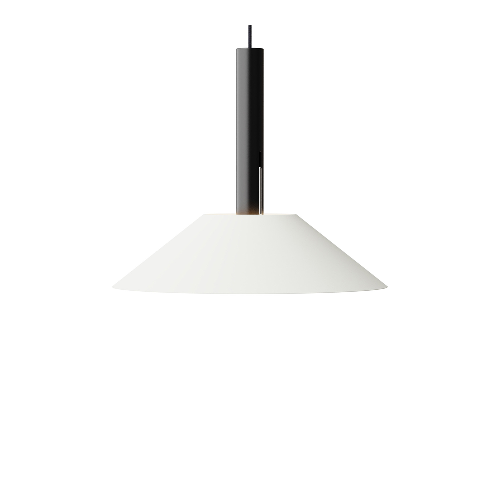 Hook Pendant Small är formgiven av den schweizisk-fransk designern Alexandra Gerber för NINE. Det är en sofistikerad pendellampa som bygger på två enkla geometriska former - en bred kon för skärmen och en cylinder för armaturen. Skärmen är upphängd i en krok av rostfritt stål, vilket gör att den ser ut att sväva. Pendellampan har ett modernt och distinkt designuttryck. Den är perfekt att hänga över ett matbord eller i mitten av vardagsrummet. Lampskärmen är tillverkad av stål och fästet av aluminium. Observera att ljuskälla inte ingår. Det rekommenderas att använda en diffus LED-glödlampa för optimalt ljus.