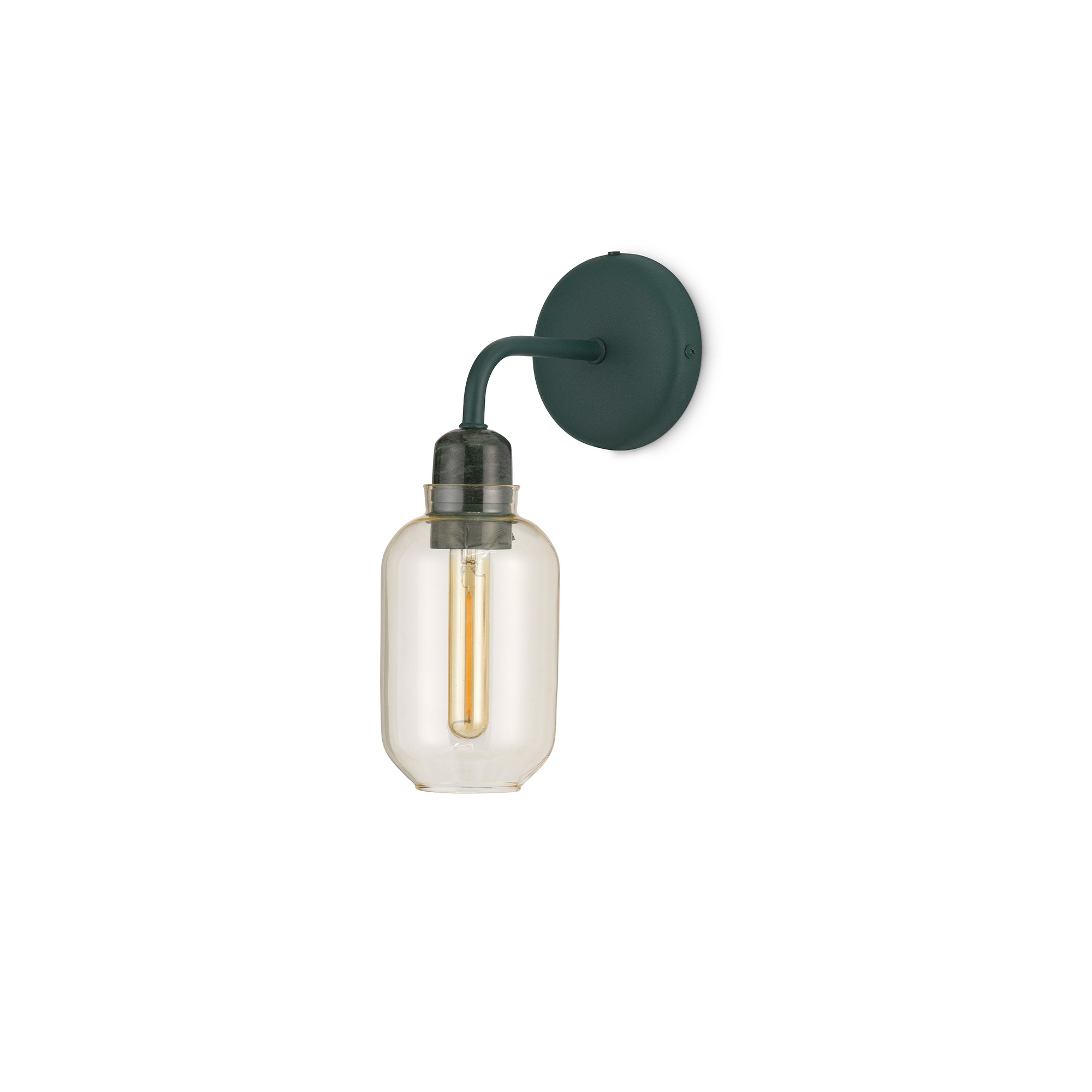 Amp Wall Lamp är en minimalistisk vägglampa, formgiven av Simon Legald, från Normann Copenhagen som kombinerar polerad marmor med lampskärmar i färgat glas för att skapa en distinkt och attraktiv design. Lampan levereras med en pulverlackerad metallkåpa och en 2 meter lång strömkabel. Den har en strömbrytare placerad på basen och kan antingen installeras direkt till ett vägguttag (hardwired) eller med den medföljande sladden. Wall Lamp erbjuder en mångsidig lösning för alla som önskar kombinera sofistikerad design med praktisk funktionalitet, perfekt för att ljussätta och försköna varje rum i hemmet.