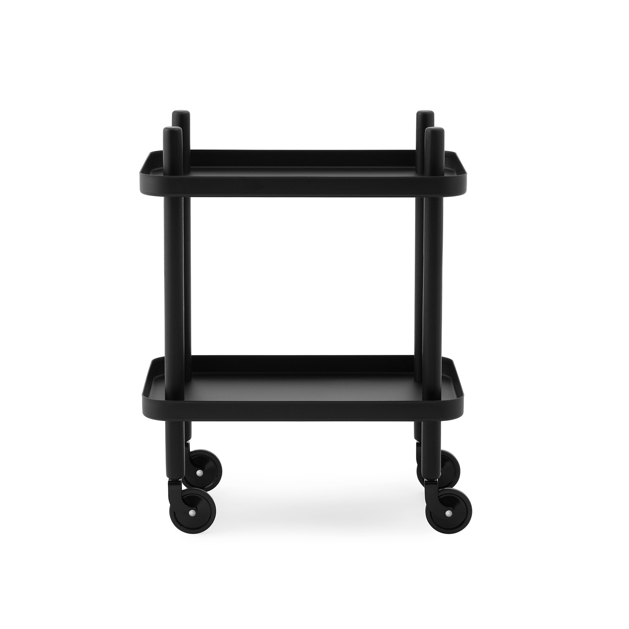 Block Table är formgivet av designern Simon Legald för varumärket Normann Copenhagen. Det är ett elegant bord för varje rum. Bordets hjul är färgkoordinerade med brickorna och kan rotera 360 grader för smidig manövrering i alla riktningar. En svart nylonring runt hjulen förbättrar grepp och stabilitet, vilket säkerställer att bordet står stadigt under användning. Tack vare de integrerade handtagen är bordet enkelt att flytta runt i hemmet eller på kontoret. Bordet levereras plattförpackad och inkluderar en monteringsanvisning. Varje hylla har en belastningskapacitet på 10 kg.