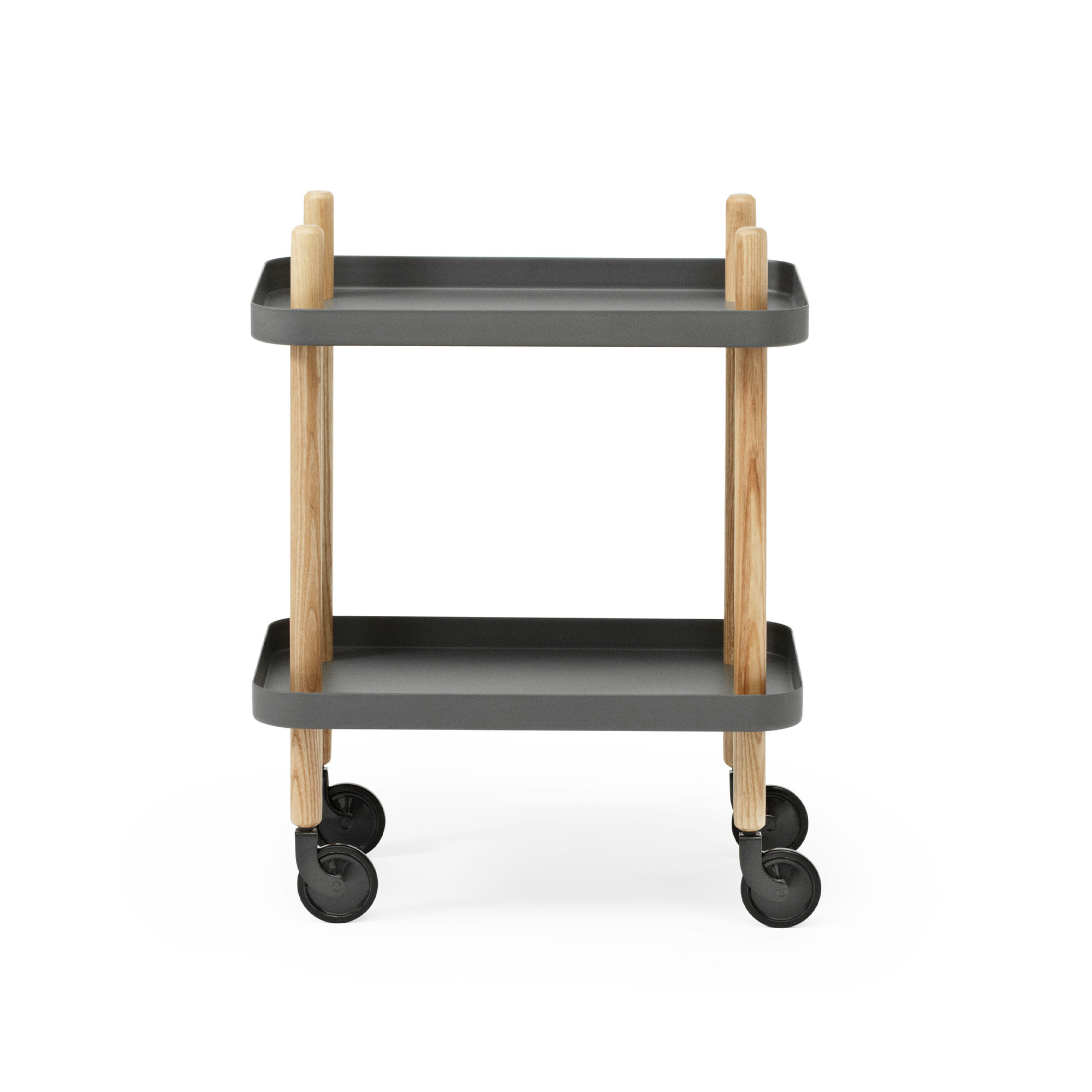 Block Table är formgivet av designern Simon Legald för varumärket Normann Copenhagen. Det är ett elegant bord för varje rum. Bordets hjul är färgkoordinerade med brickorna och kan rotera 360 grader för smidig manövrering i alla riktningar. En svart nylonring runt hjulen förbättrar grepp och stabilitet, vilket säkerställer att bordet står stadigt under användning. Tack vare de integrerade handtagen är bordet enkelt att flytta runt i hemmet eller på kontoret. Bordet levereras plattförpackad och inkluderar en monteringsanvisning. Varje hylla har en belastningskapacitet på 10 kg.
