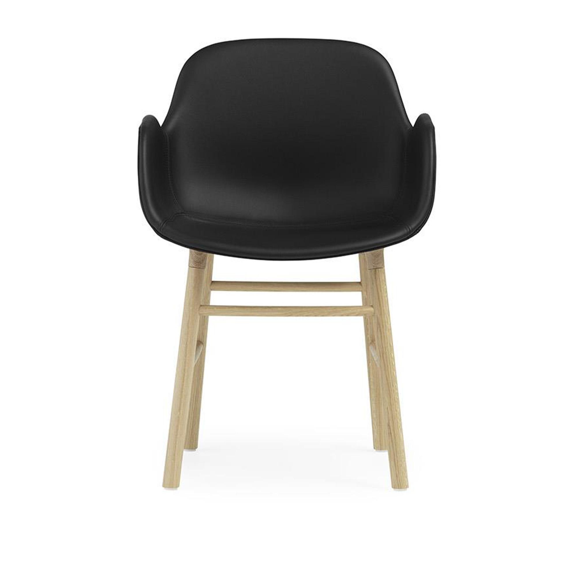 Form Armchair Full Upholstery Oak är en matstol designad av formgivaren Simon Legald för designvarumärket Normann Copenhagen. Stolen kombinerar funktion och design på ett elegant vis som passar tillsammans med många olika inredningsstilar. De specialutvecklade kopplingarna ger en sömlös övergång mellan sits och ben, vilket skapar ett enhetligt designuttryck. Sitsen är gjord av plast som ger hög komfort, medan de svarta ekbenen bidrar med ett stilrent formspråk. Stolen levereras färdigmonterad.