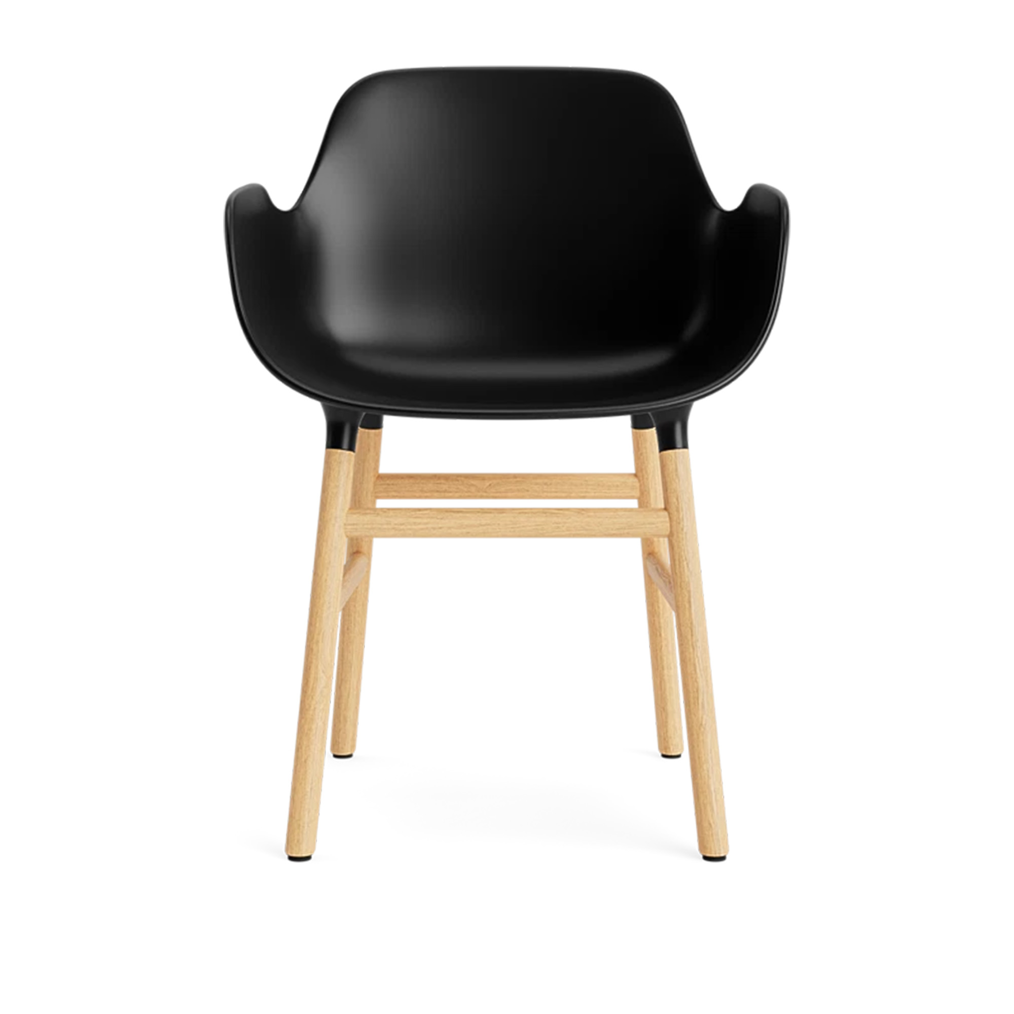 Form Armchair Oak är en stol designad av formgivaren Simon Legald för Normann Copenhagen. Stolen kombinerar funktionalitet med en distinkt design som passar i olika miljöer. Sömlösa övergångar mellan sits och ben skapas genom specialutvecklade kopplingar, vilket ger ett stilrent utseende. Sitsen är tillverkad av slitstark polypropylen för komfort och hållbarhet, medan benen i ek tillför en naturlig känsla. Stolen levereras färdigmonterad med noggrant färgmatchade kopplingar för att förstärka designen.