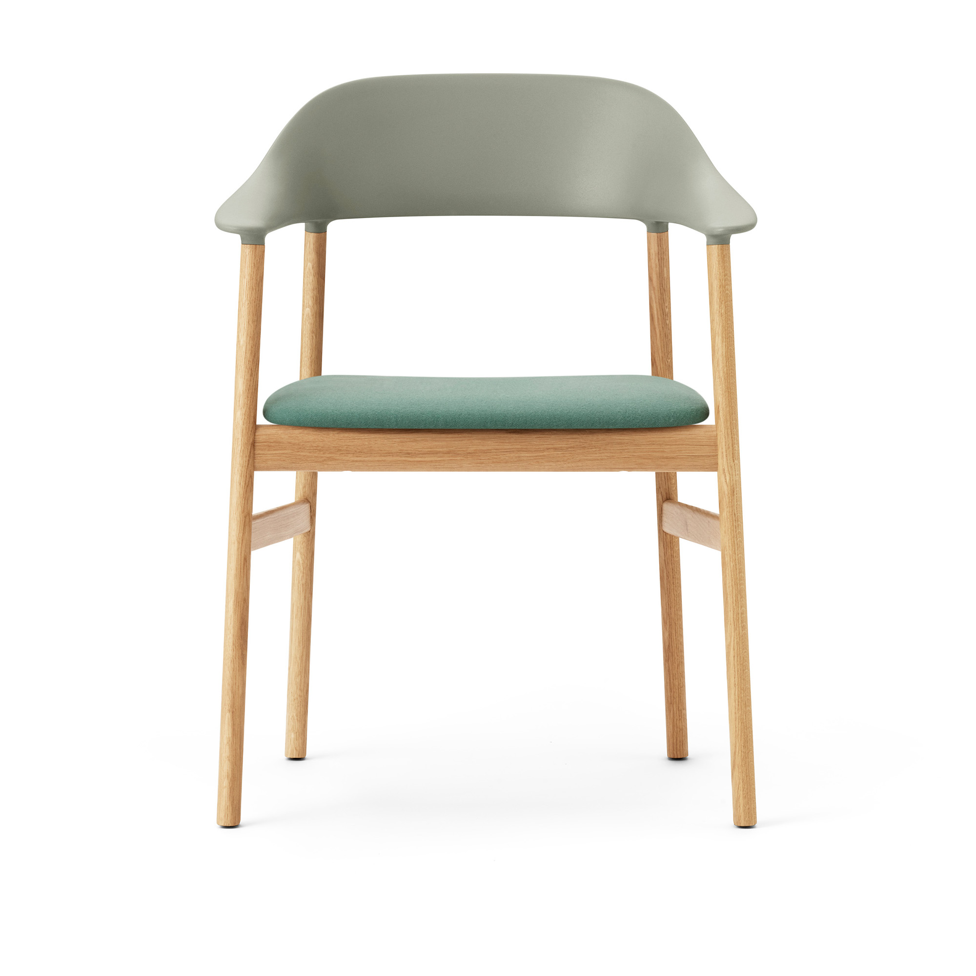 Normann Copenhagen - Herit Armchair Upholstery Oak Synergy Dusty Green - Matstolar - Simon Legald - Grön - Läder/Trä/Plast