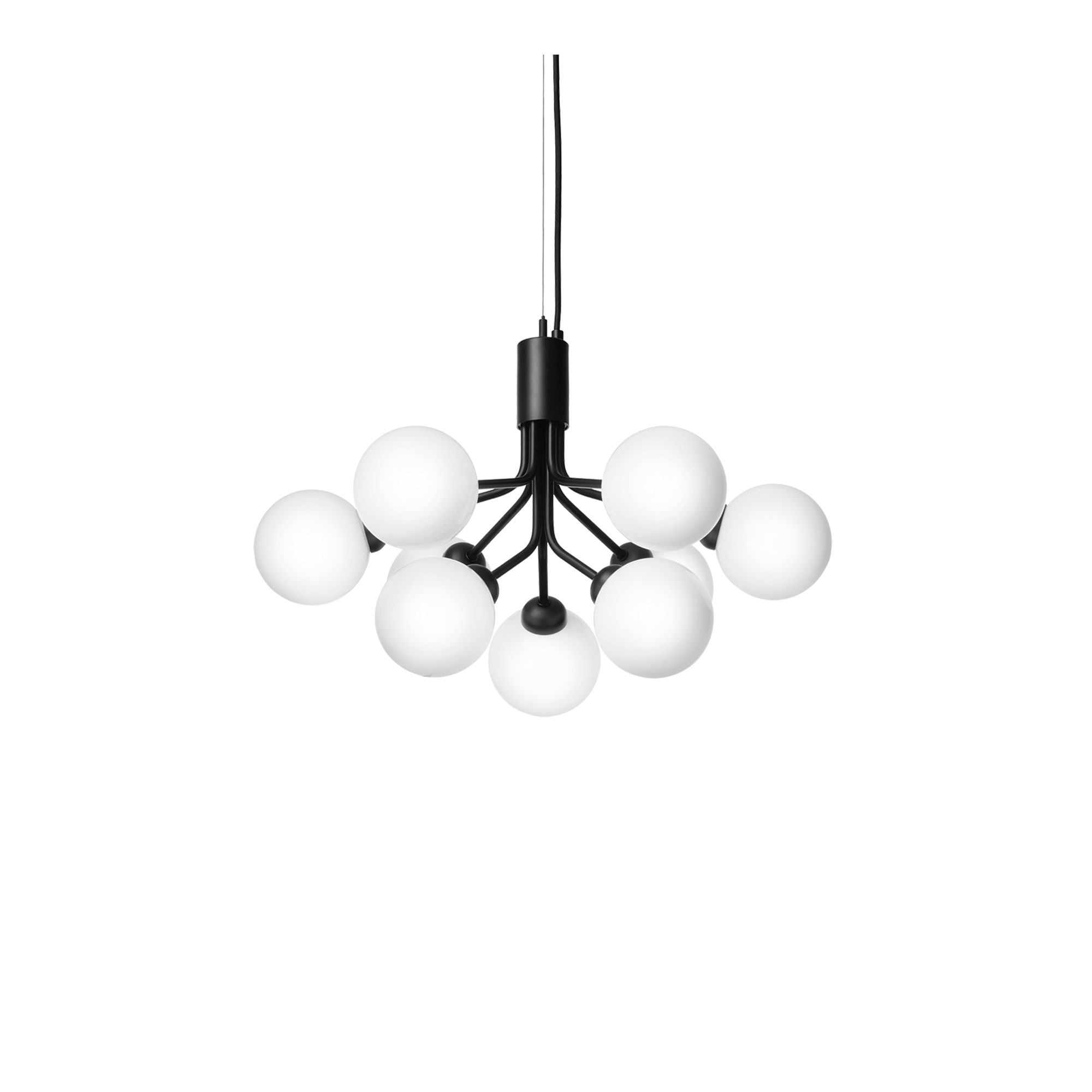 Apiales 9 är en taklampa från Nuura, formgiven av Sofie Refer. När Sofie Refer påbörjade sitt arbete med Apiales-serien blev hon inspirerad av blomblad, hur bladen vecklas ut från stjälken och blommar ut med en explosion av liv och färg. Resultatet blev en vacker lampa med ett kluster av ljuskällor som skapar ett vackert och harmoniskt sken. Lampan är tillverkad i handblåst glas av yrkesskickliga hantverkare med detaljer i metall. Finns i flera olika utföranden.