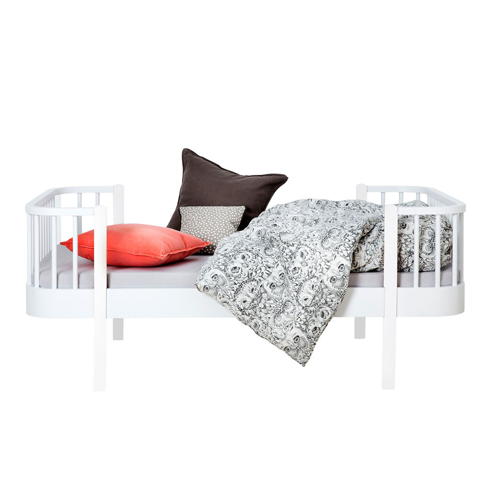 Juniorsäng från danska Oliver Furniture som i sitt uttryck stämmer väl överens med övriga barnmöbler i serien Wood. Lämpar sig väl för de barn som växt ur spjälsängen men som ännu inte har behov av en fullstor säng. Sängen är tillverkad i lackad massiv björk och PDF och finns i två varianter, där en även har detaljer i lackad massiv ek. Sängen är en del av den exklusiva kollektionen Wood, formgiven för att lyfta fram den naturliga skönheten i trä som material.