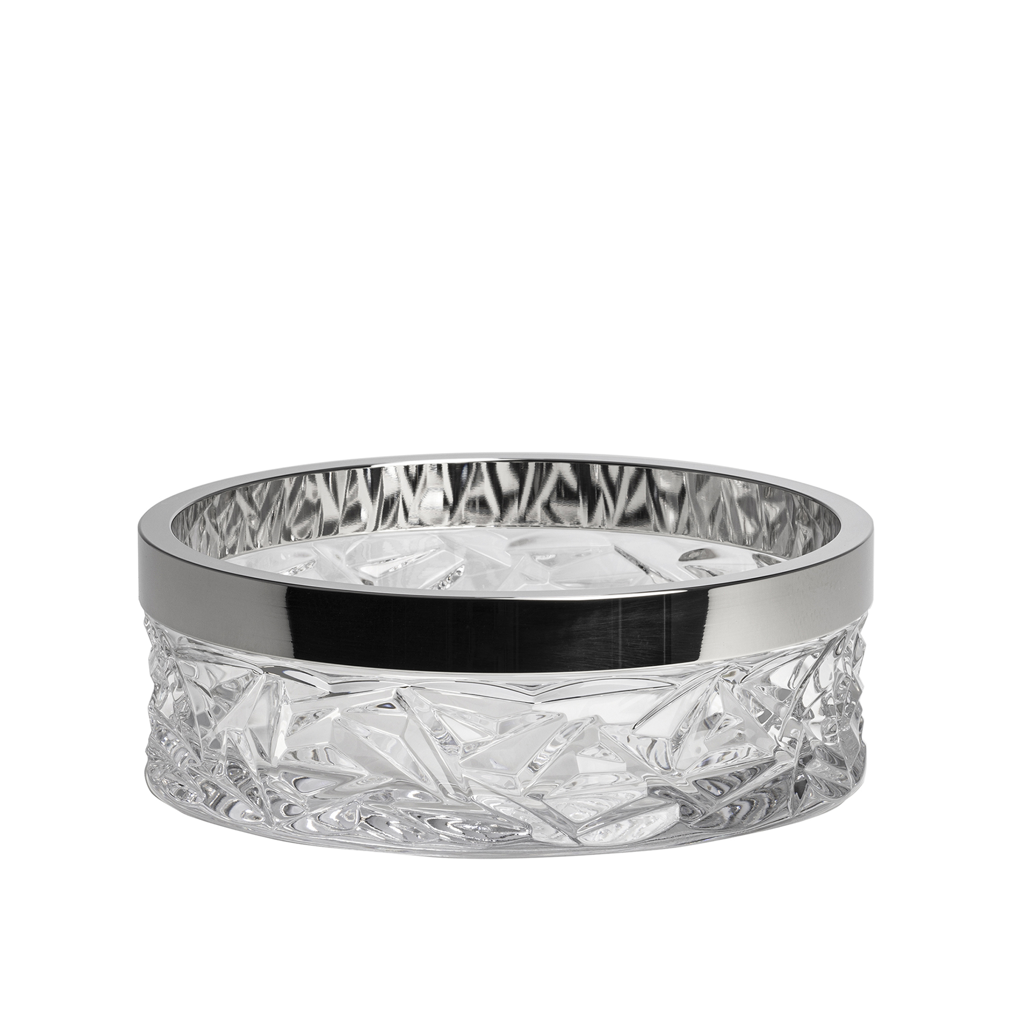 Serien Carat från Orrefors lanserades 2009 av formgivaren Lena Bergström. I stället för att följa den mer traditionella glasslipningen, har hon istället valt ett mer modernt uttryck med oregelbundna geometriska linjer som skapar vackra reflektioner av ljus. Carat Bowl är en vacker skål i blyfri kristall med en övre kant i metall.