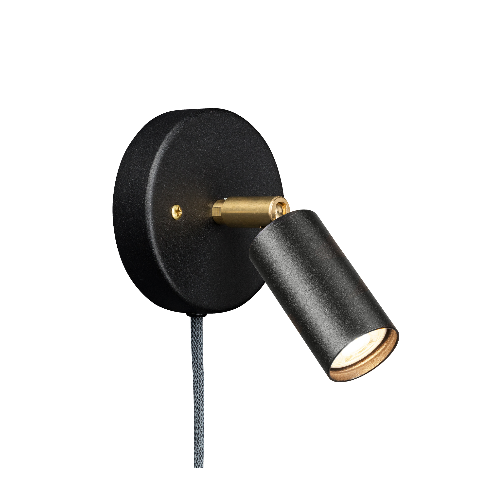 Denna variant är utrustad med synlig textilkabel, strömbrytare och stickkontakt, vilket möjliggör montering utan ingrepp i elinstallationen. Konstruktionen är tillverkad i metall och har ett justerbart ljushuvud som kan vinklas efter behov. Finishen varierar mellan flera metaller och ytbehandlingar, vilket gör att armaturen kan anpassas till olika miljöer och användningsområden.
