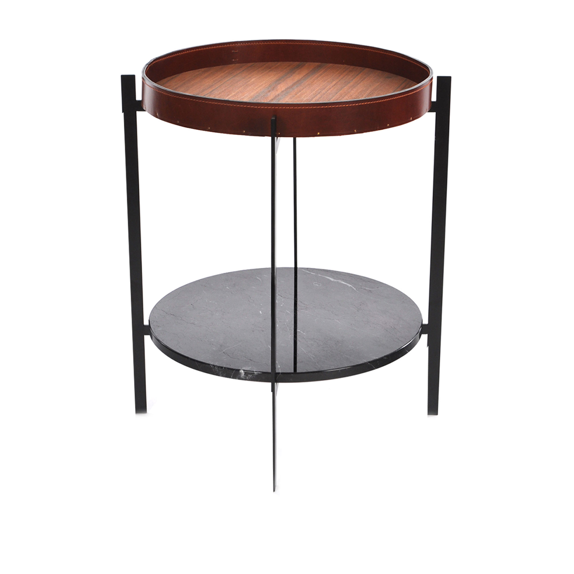OX Denmarq - Deck Table, Black Steel Frame, Trays: Teak Black Marble - Sidobord - Dennis Marquart - Träfärgad - Läder/Trä