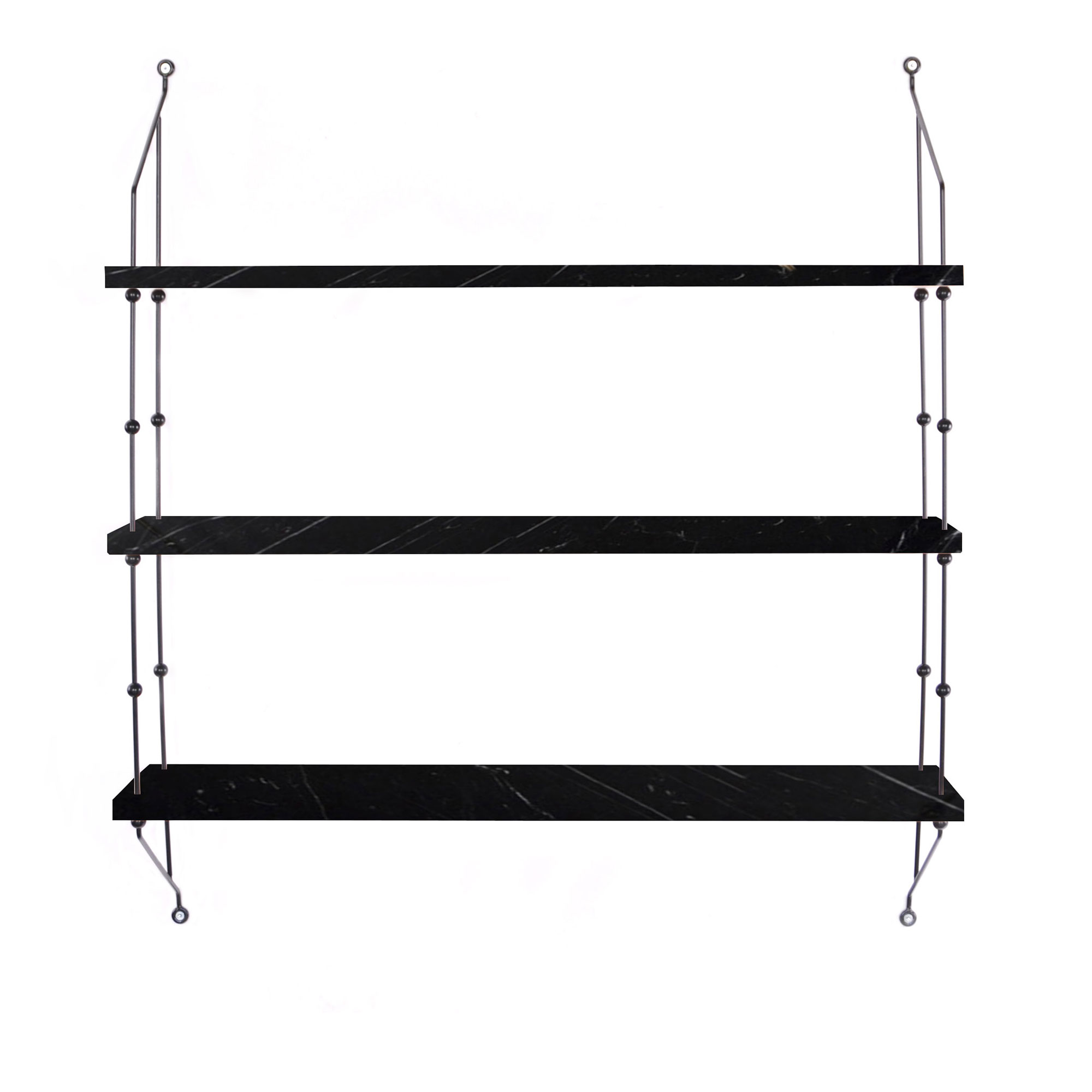 OX Denmarq - Morse, Black Steel Frame, Shelves: 3X Black Marble - Vägghyllor - Dennis Marquart - Vit - Metall/Sten