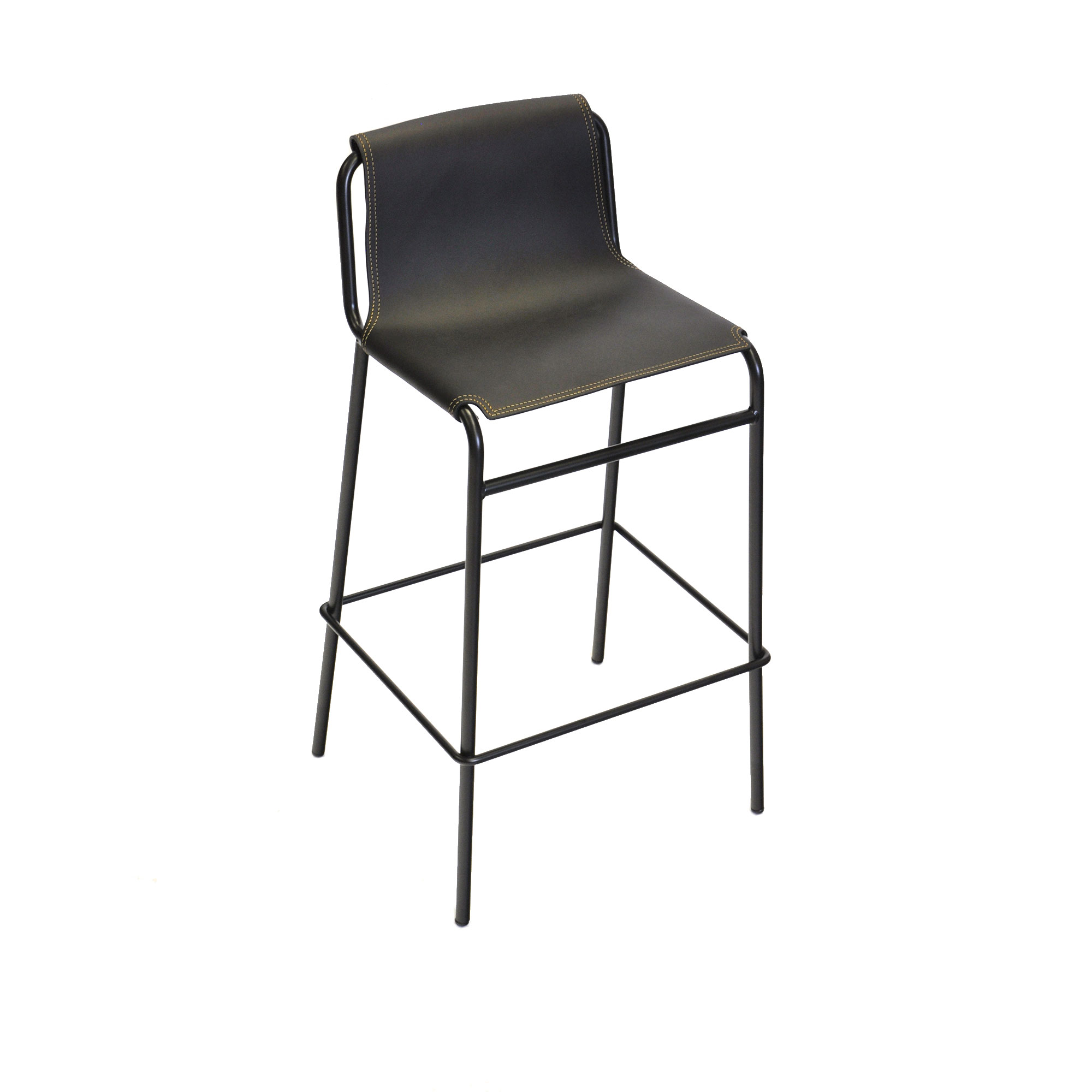 OX Denmarq - September Bar Stool, Black Steel Frame, Leather: Black, Black Sewing - Barstolar - Dennis Marquart - Svart - Läder/Metall