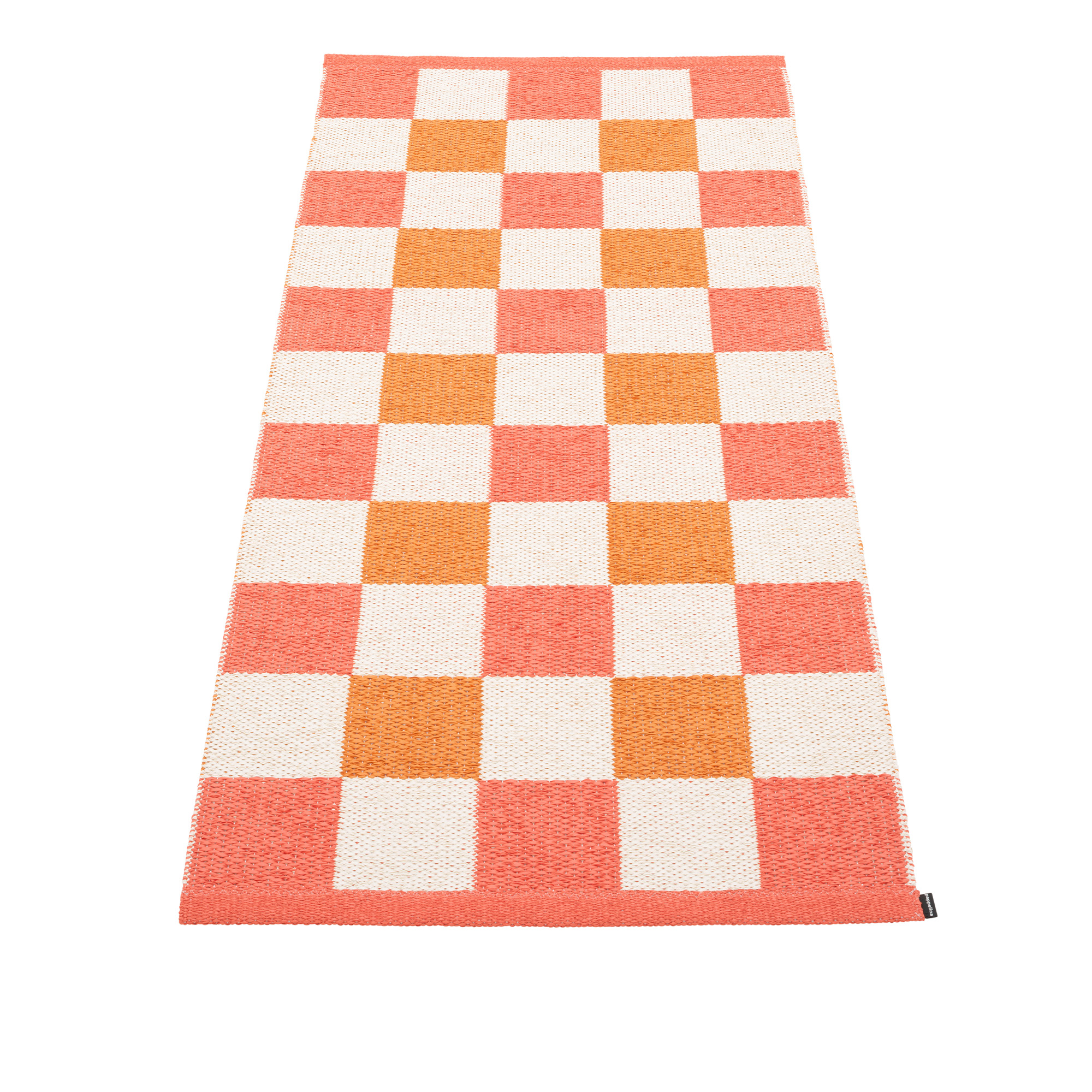 Pix 70 x 160 cm är formgiven av designvarumärket Pappelina. Det är en rutig plastmatta i kulörta nyanser som passar perfekt i hallen, vardagsrumet, uterummet eller köket. Mattan vävs av svensktillverkade ftalatfria plastband i traditionella vävstolar. Den är enkel att rengöra genom handtvätt eller maskintvätt 30°C utan centrifugering. Den är tillverkad av 92% PVC och 8% polyester varp. Observera att storleksavvikelser på ±4% kan förekomma på grund av vävtekniska skäl.