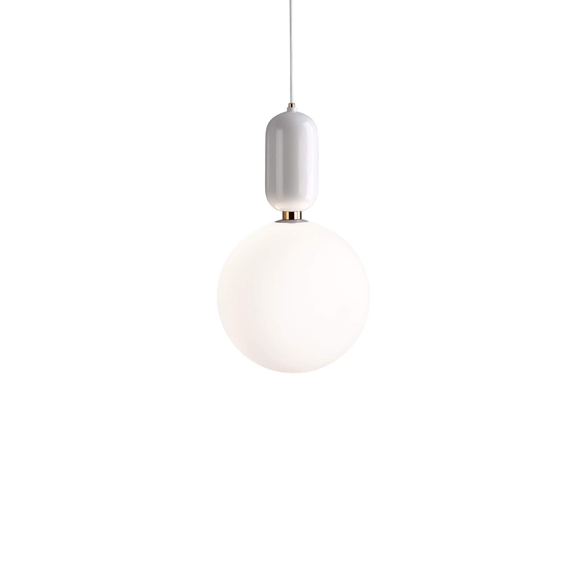 Aballs T Pendel är en del av belysningsserien Aballs, formgiven av Jaime Hayon för Parachilna. Pendeln består av en handgjord kropp i högblank keramik, samt en glaskupa i matt opalglas som vackert släpper igenom ett behagligt ljussken.
