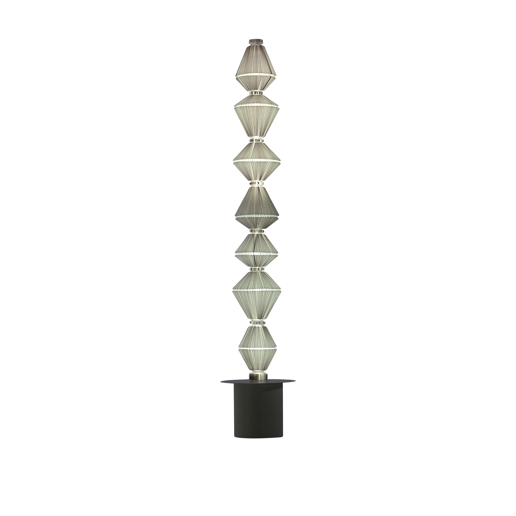 Designstudion Atelier Oï från Schweiz står bakom designen av golvlampan OïPhorique P Gr Floor Lamp, vilken lanserades av Parachilna under 2014. Denna lampa är en del av OïPhorique-kollektionen, som utmärker sig genom sin unika konstruktion som tillåter lampan att förflytta sig när den lyser. Inom samma kollektion finns även taklampor med liknande estetik och en annan golvlampa i en mindre dimension, vilka är idealiska för att skapa en harmonisk inredning. Med sin distinkta design erbjuder OïPhorique P Gr Floor Lamp en revolutionerande ljusupplevelse genom dess förmåga att röra sig vid tändning. Dess mjuka rörelser bidrar till en avslappnad och drömlik atmosfär i det utrymme den placeras. Lampan är konstruerad av pyramidformade textilsegment som tillsammans bildar en imponerande och estetiskt tilltalande struktur. Du kan välja mellan en ljusgrå eller mörkgrå färg på tyget.