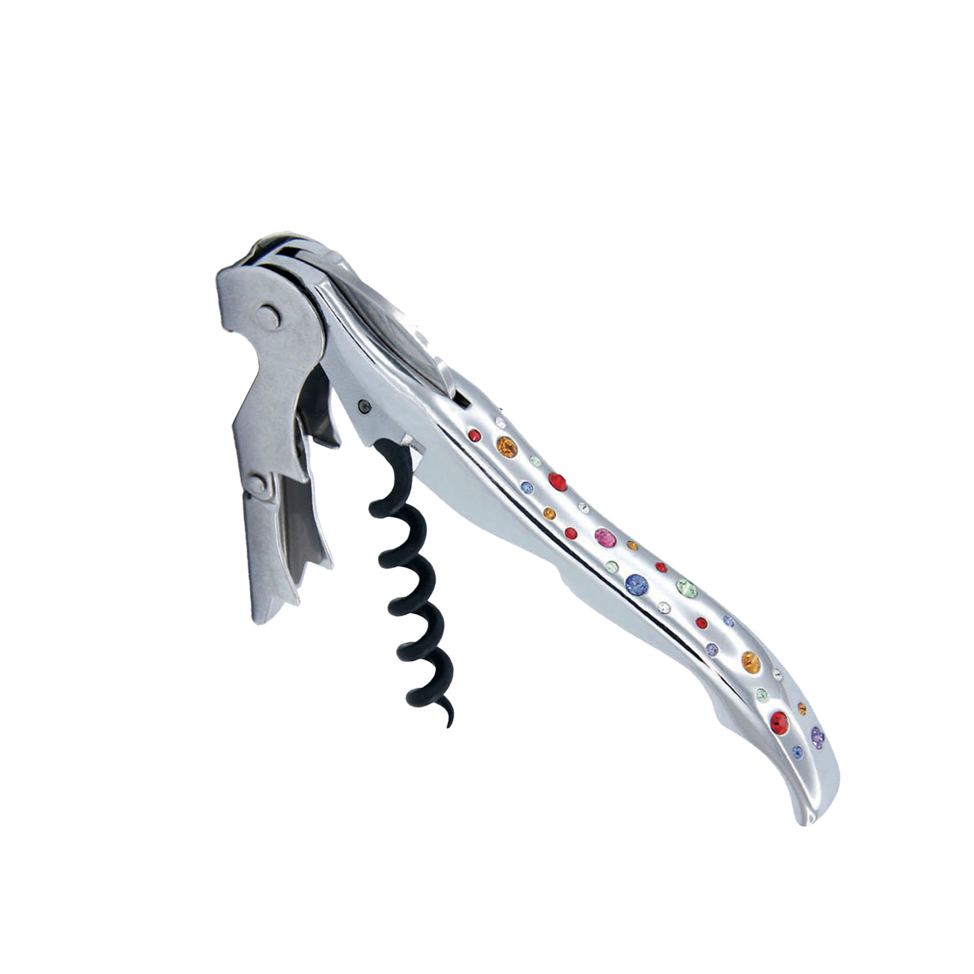 PWC Vinöppnare Pulltaps Evolution Rainbow från Pulltex är en stilfull vinöppnare med 26 färgade Swarovski-stenar. Den har en tvåstegs hävarm som säkerställer en smidig öppning av vinflaskor. Levereras i ett silkesklätt läderetui som ger en exklusiv känsla och skyddar vinöppnaren vid förvaring.