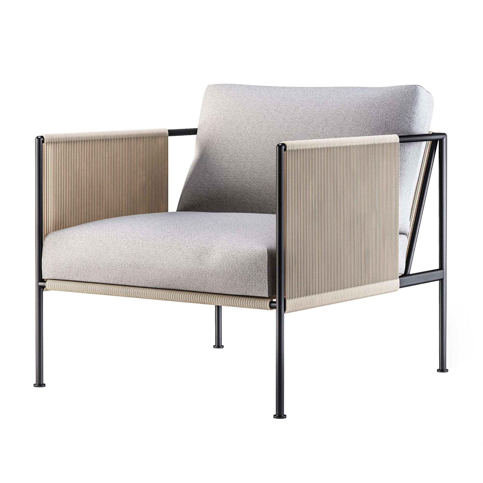 Röshults - Garden Antibes Chair, Anthracite/Sand, Rope, Cushion Lopi Marble, Sunbrella Fabric - Fåtöljer utomhus - Broberg & Ridderstråle - Beige - Metall/Textilmaterial/Skum