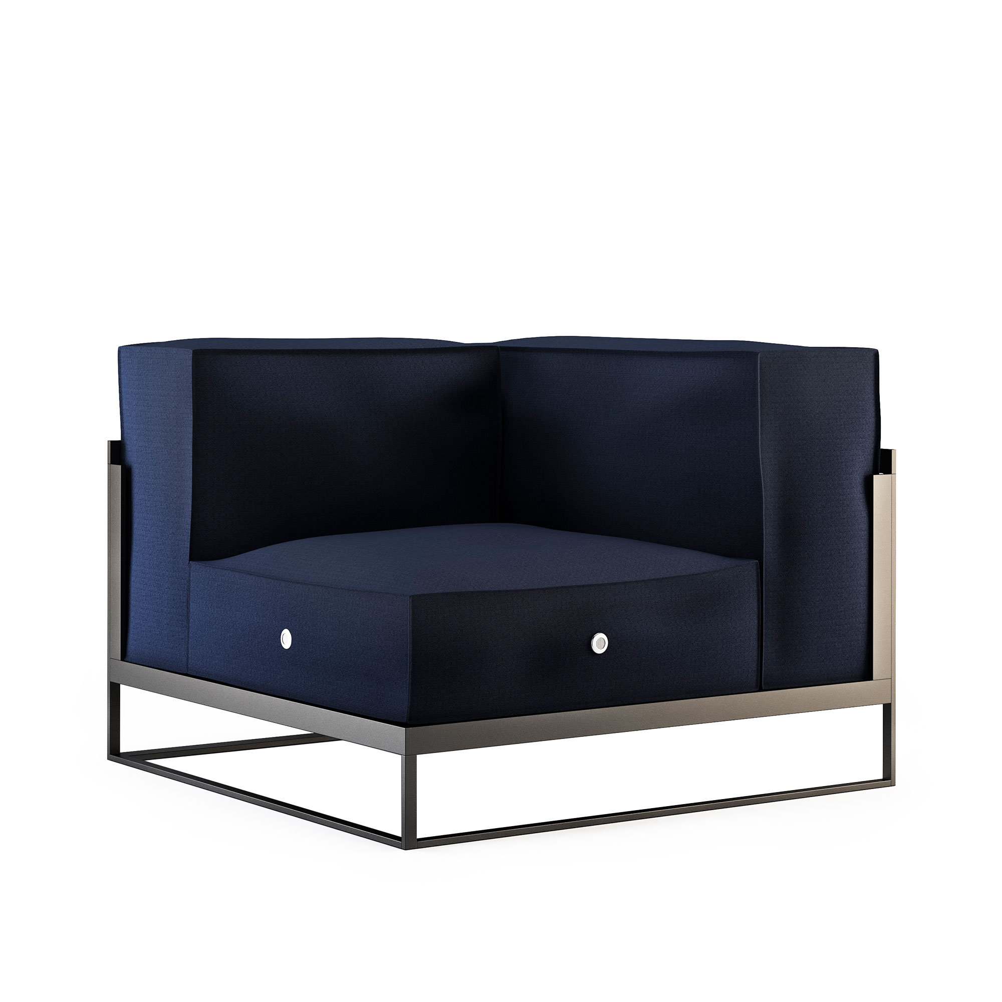 Röshults - Garden Moore Corner Frame, Anthracite, Cushion Back + Seat, Navy Blue - Fåtöljer utomhus - Broberg & Ridderstråle - Blå - Textilmaterial/Skum