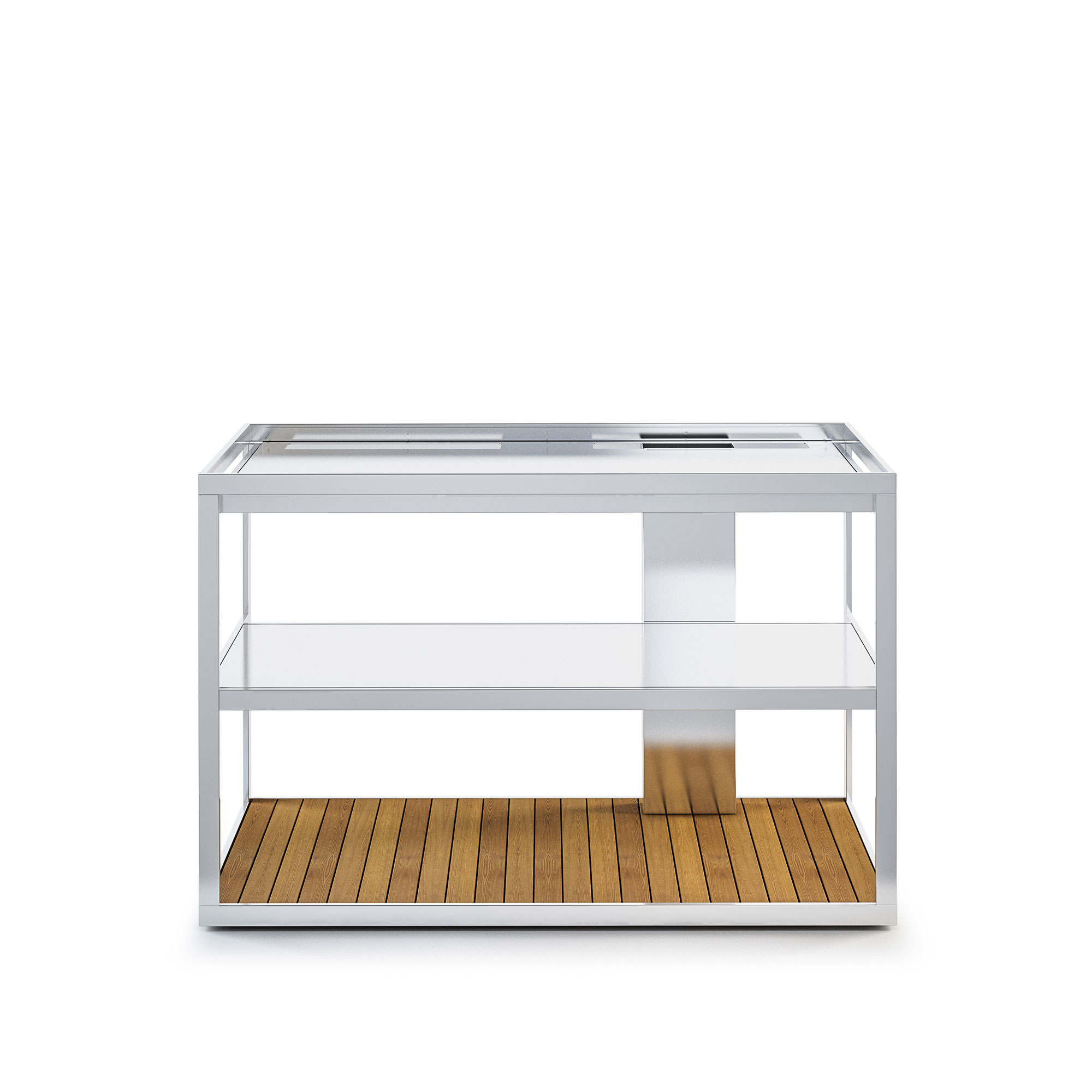 Röshults - Open Kitchen Frame 100, Brushed Stainless Steel, Teak Bottom - Utekök - Broberg & Ridderstråle