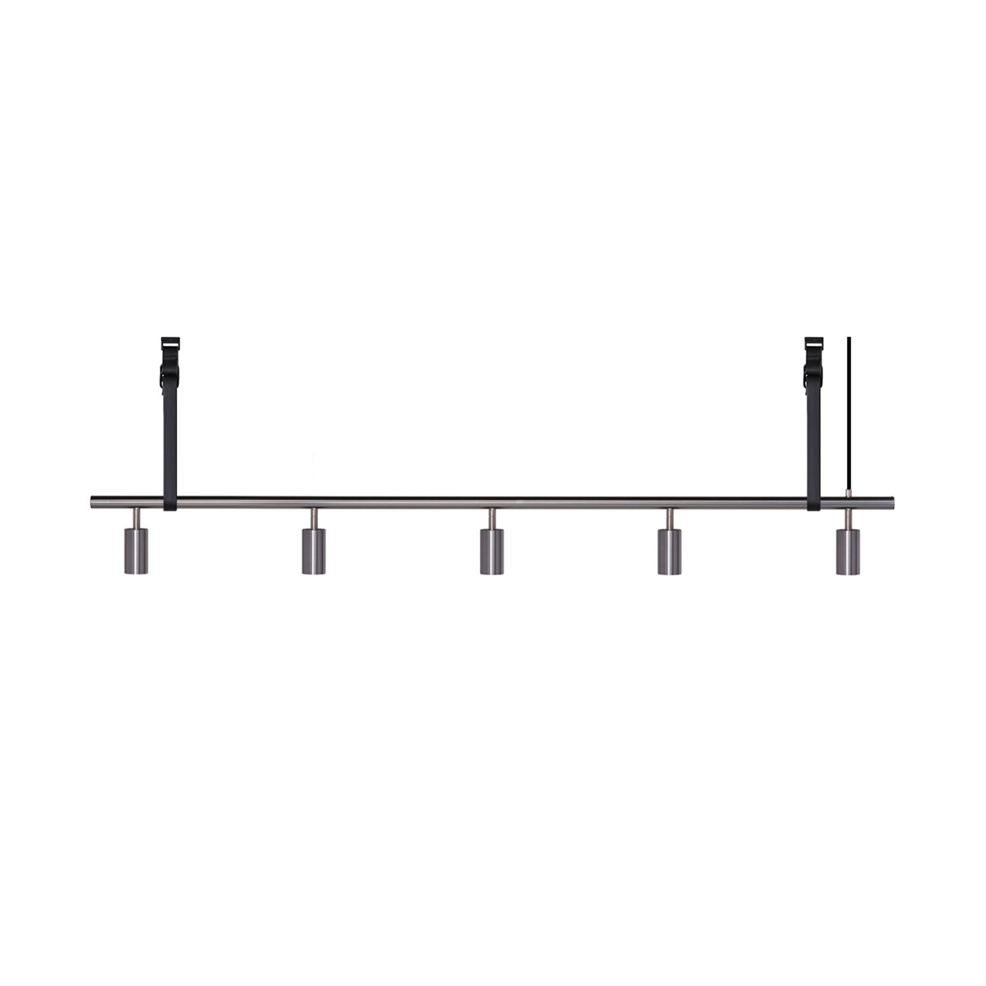 Long John 5 Steel är en taklampa från Rubn, formgiven av Niclas Hoflin och tillverkad för hand i Sverige. Med enkla former och råa material passar Long John in i många olika typer av interiörer. Lampans spotlights kan vinklas och roteras för önskad ljussättning samt är utrustad med modern LED-teknik och kan dimmas för önskad ljusstyrka. Lampan finns i olika längder och materialkombinationer för att kunna passa bra över både kortare och längre ytor.