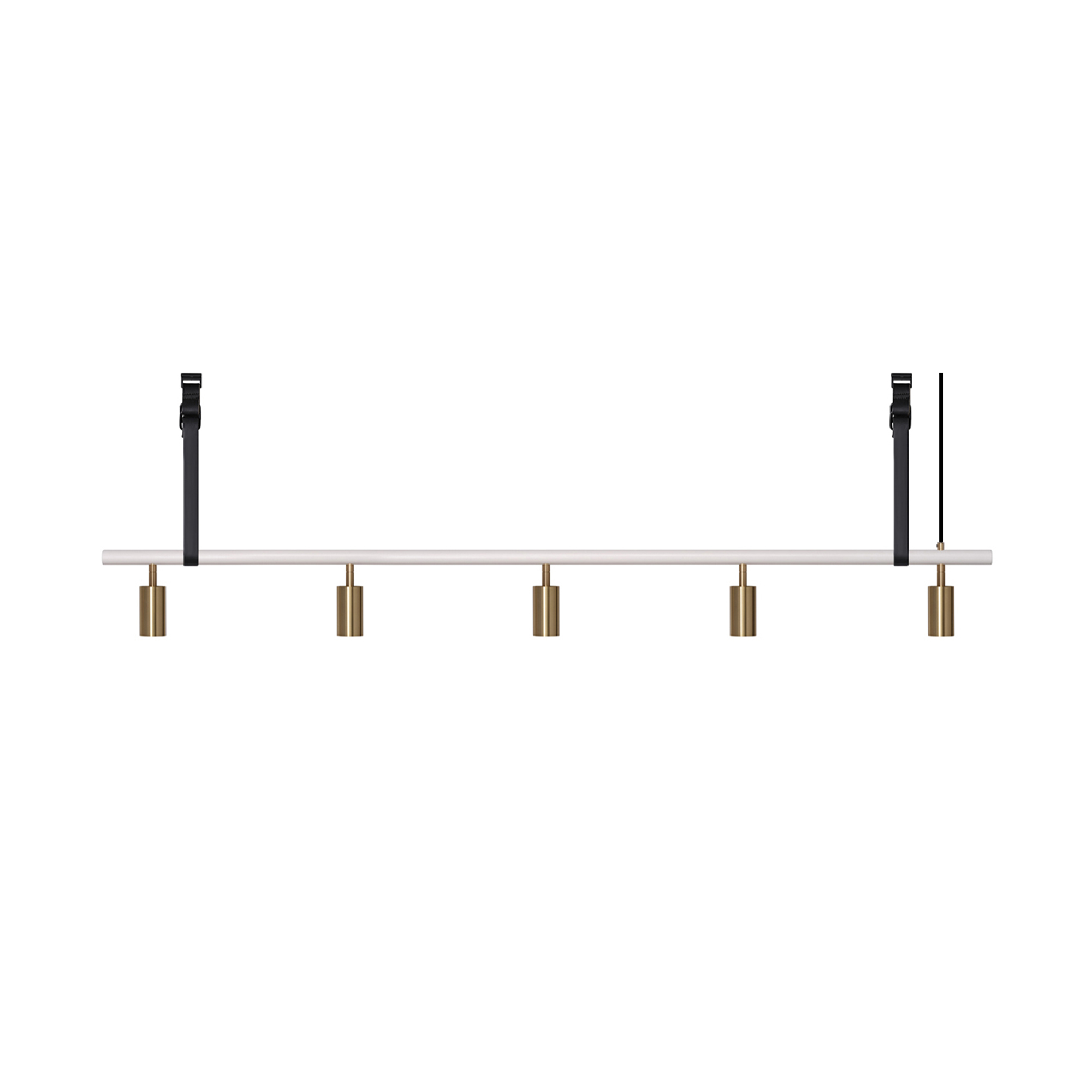 Long John 5 White/Brass är en taklampa från Rubn, formgiven av Niclas Hoflin och tillverkad för hand i Sverige. Med enkla former och råa material passar Long John in i många olika typer av interiörer. Lampans spotlights kan vinklas och roteras för önskad ljussättning samt är utrustad med modern LED-teknik och kan dimmas för önskad ljusstyrka. Lampan finns i olika längder och materialkombinationer för att kunna passa bra över både kortare och längre ytor.