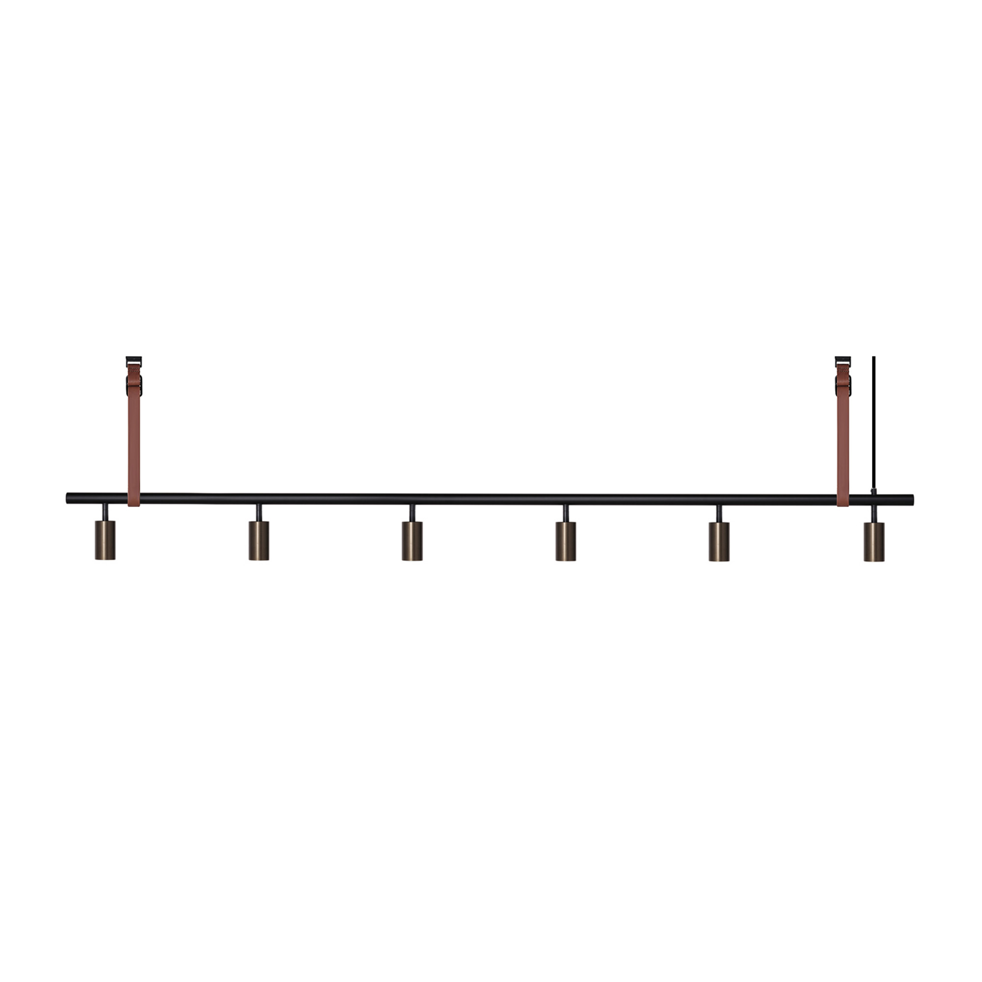 Long John 6 Black/Bronze är en taklampa från Rubn, formgiven av Niclas Hoflin och tillverkad för hand i Sverige. Med enkla former och råa material passar Long John in i många olika typer av interiörer. Lampans spotlights kan vinklas och roteras för önskad ljussättning samt är utrustad med modern LED-teknik och kan dimmas för önskad ljusstyrka. Lampan finns i olika längder och materialkombinationer för att kunna passa bra över både kortare och längre ytor.