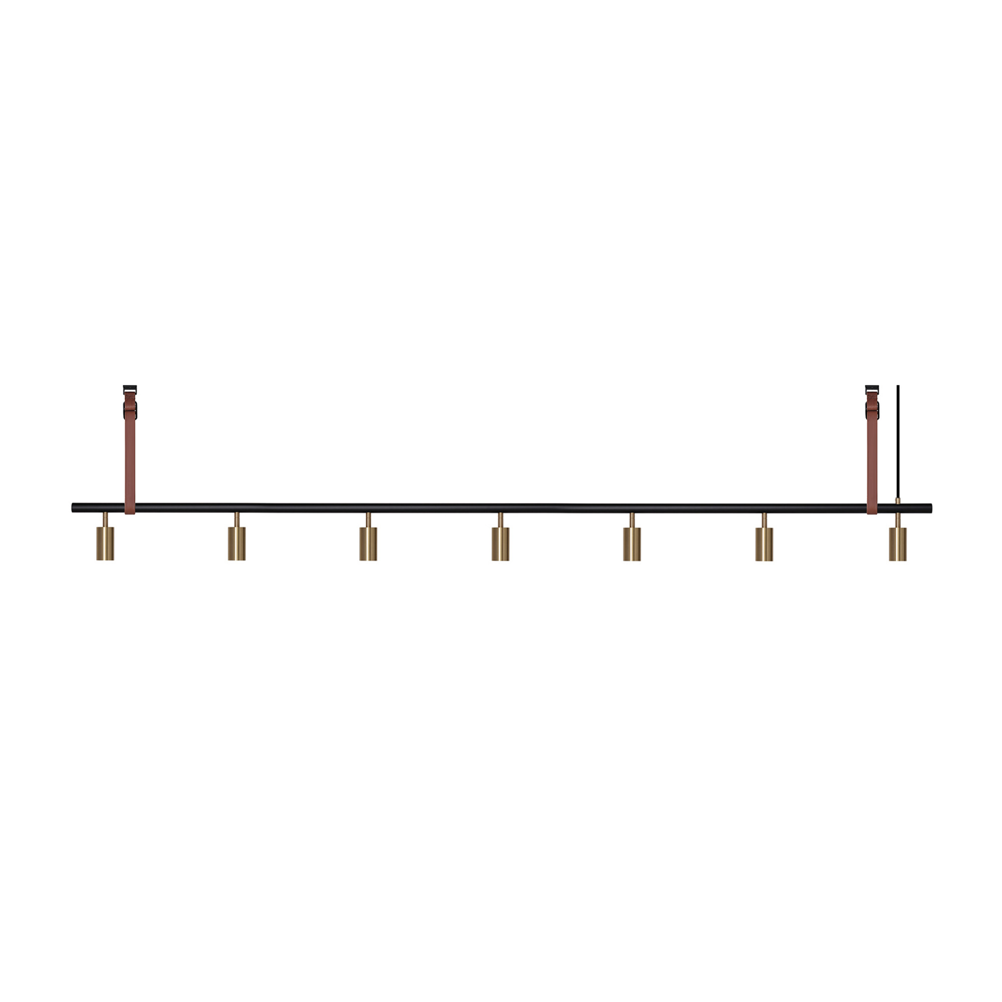 Long John 7 Black/Brass är en taklampa från Rubn, formgiven av Niclas Hoflin och tillverkad för hand i Sverige. Med enkla former och råa material passar Long John in i många olika typer av interiörer. Lampans spotlights kan vinklas och roteras för önskad ljussättning samt är utrustad med modern LED-teknik och kan dimmas för önskad ljusstyrka. Lampan finns i olika längder och materialkombinationer för att kunna passa bra över både kortare och längre ytor.