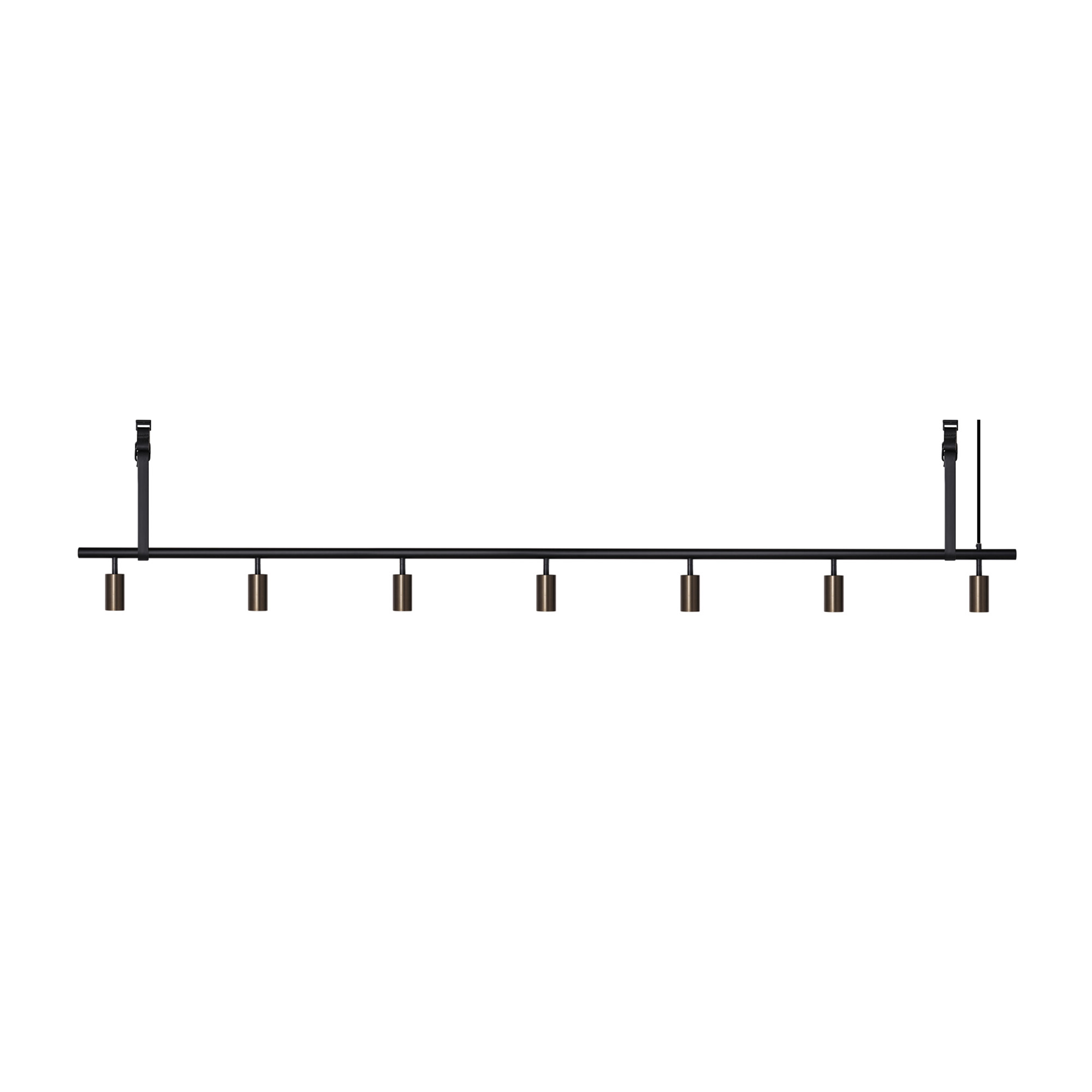 Long John 7 Black/Bronze är en taklampa från Rubn, formgiven av Niclas Hoflin och tillverkad för hand i Sverige. Med enkla former och råa material passar Long John in i många olika typer av interiörer. Lampans spotlights kan vinklas och roteras för önskad ljussättning samt är utrustad med modern LED-teknik och kan dimmas för önskad ljusstyrka. Lampan finns i olika längder och materialkombinationer för att kunna passa bra över både kortare och längre ytor.