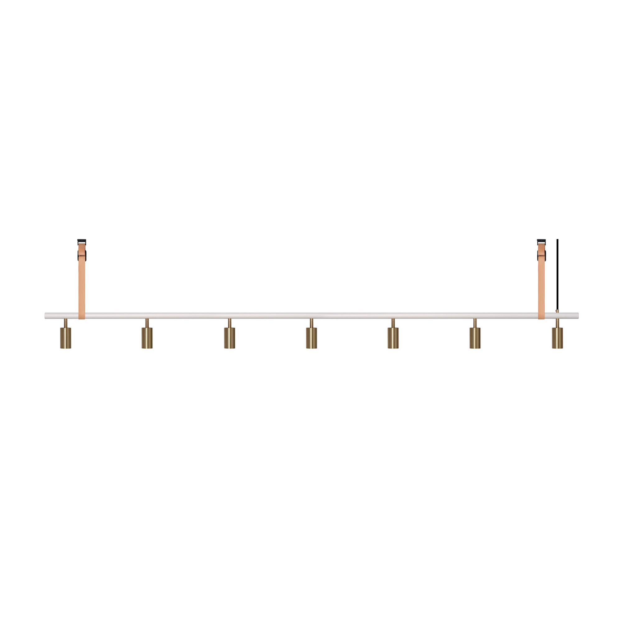 Long John 7 White/Brass är en taklampa från Rubn, formgiven av Niclas Hoflin och tillverkad för hand i Sverige. Med enkla former och råa material passar Long John in i många olika typer av interiörer. Lampans spotlights kan vinklas och roteras för önskad ljussättning samt är utrustad med modern LED-teknik och kan dimmas för önskad ljusstyrka. Lampan finns i olika längder och materialkombinationer för att kunna passa bra över både kortare och längre ytor.