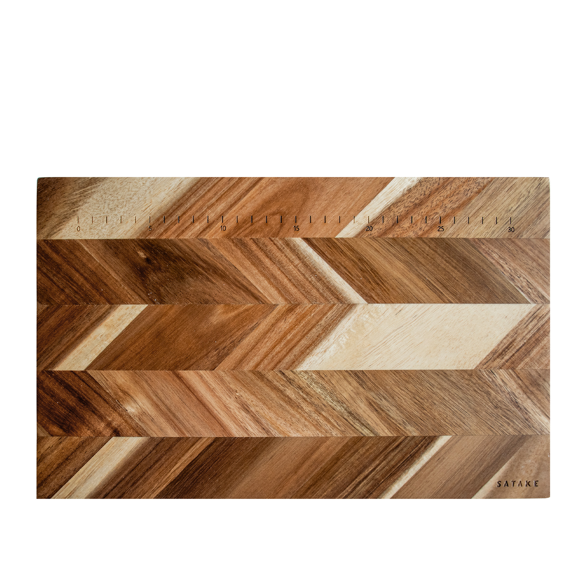 Skärbrädan i akaciaträ från Satake är designad med centimetermarkeringar som hjälper till att skära allt från grönsaker och bröd till kött och fisk med hög precision. Brädan har gummifötter på undersidan för ökad stabilitet.