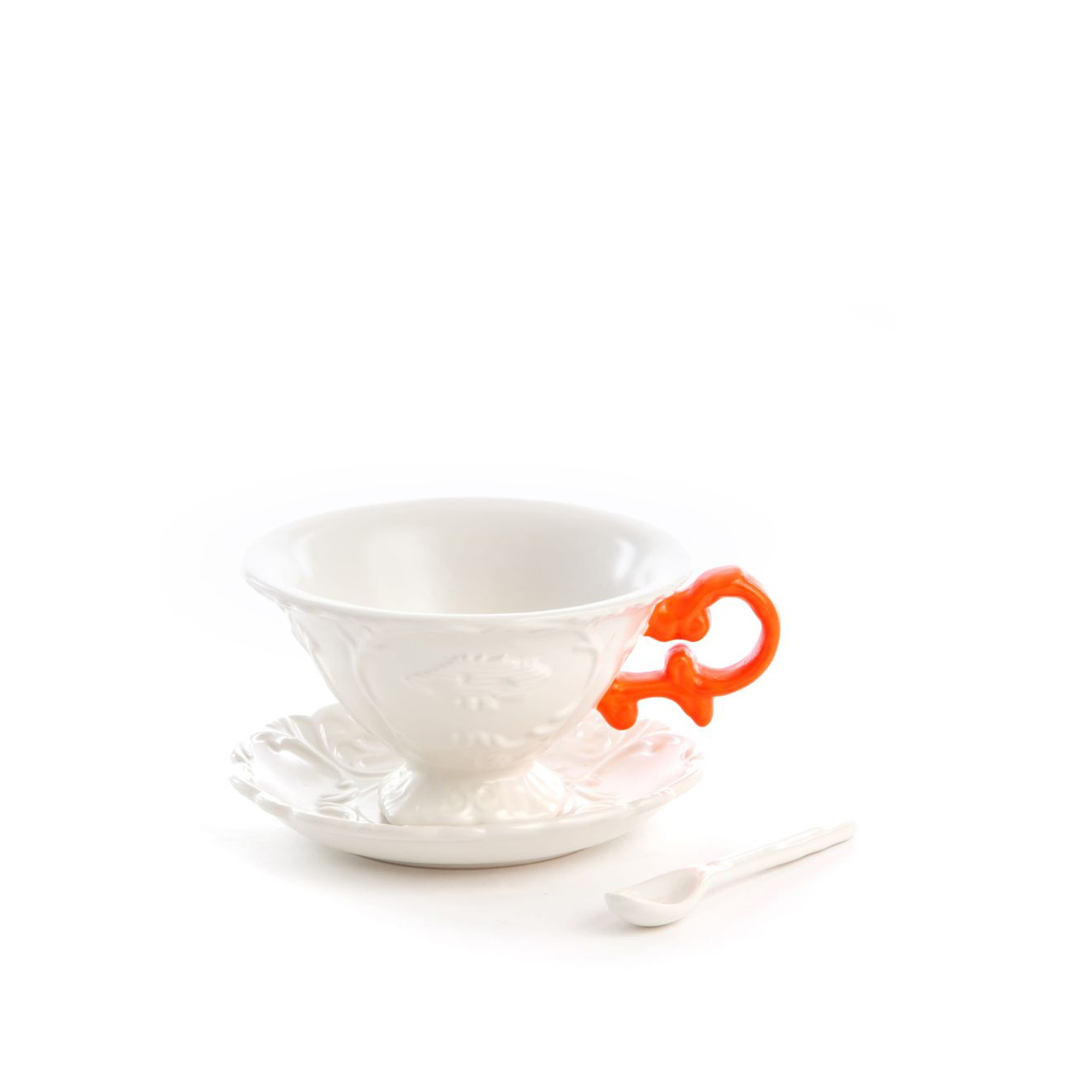 Seletti - I-Wares Set In Porcelain With Coloured Handles - Orange - Tekoppar - Selab - Orange,Vit